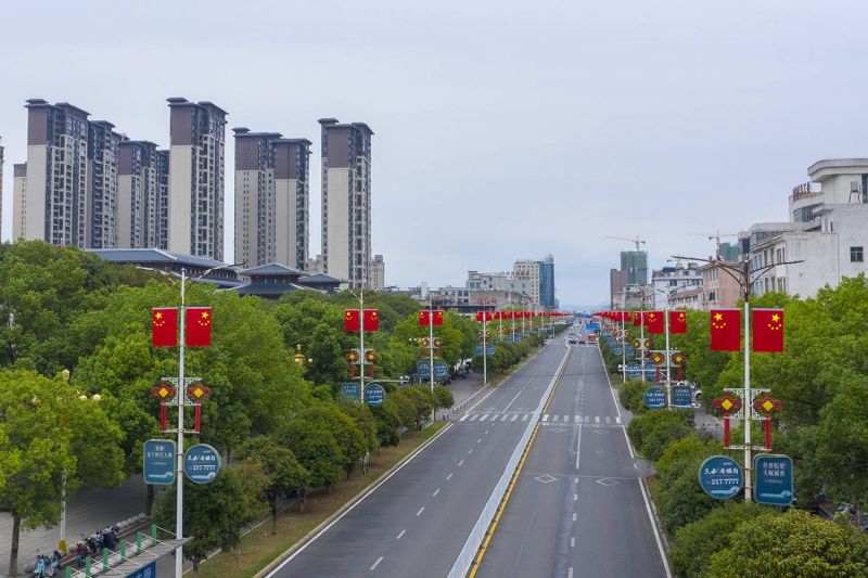 江西余干:国旗招展迎国庆