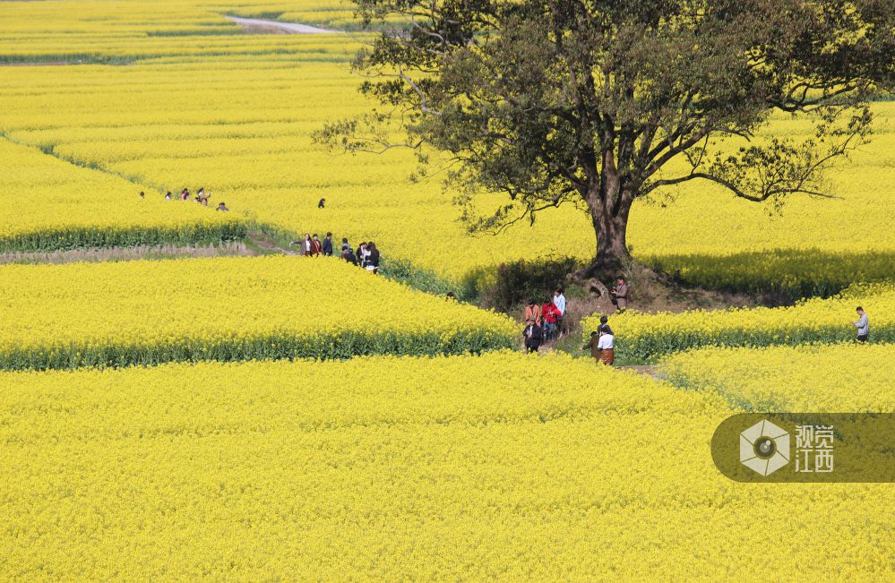 3月10日,安福县洋溪镇石山村油菜花海游人如织。当天,石山村举办油菜花节,吸引了上万名游客前去游玩赏花。近年来,安福县鼓励、扶持60余个村发展赏花、体验、拓展、写生、摄影等主题性文化旅游项目,增加农民收入,加快了乡村振兴步伐。