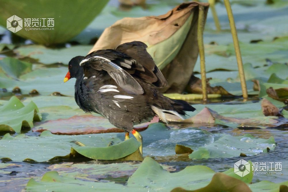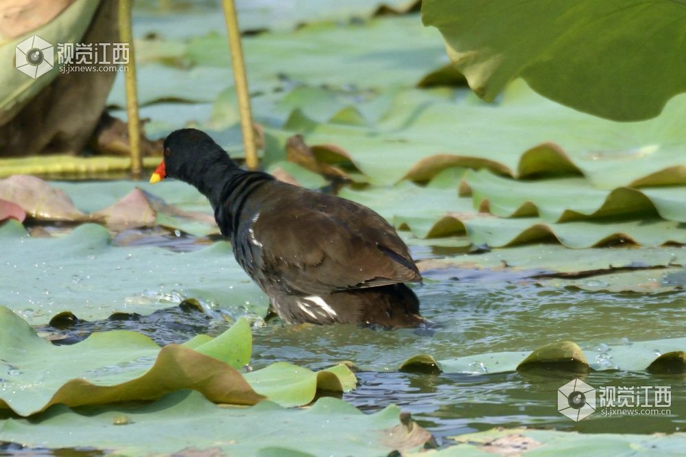 南昌艾溪湖湿地公园里的黑水鸡。