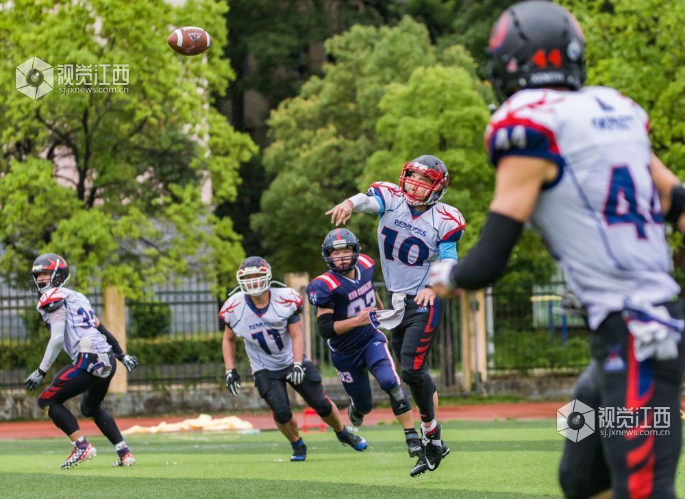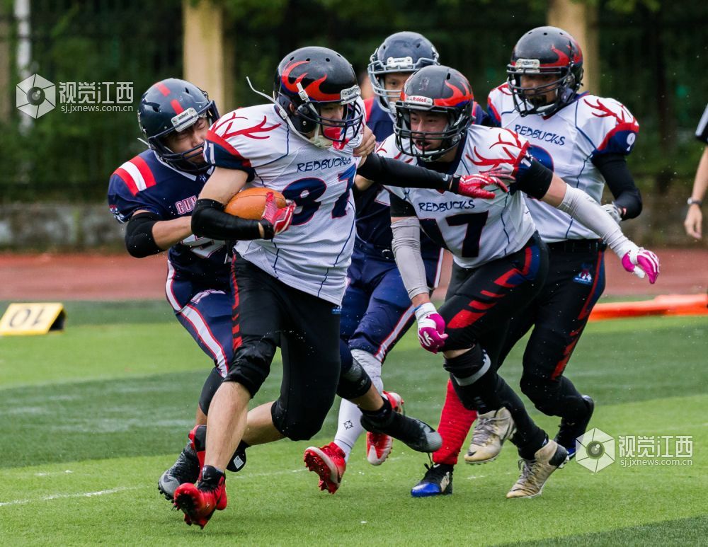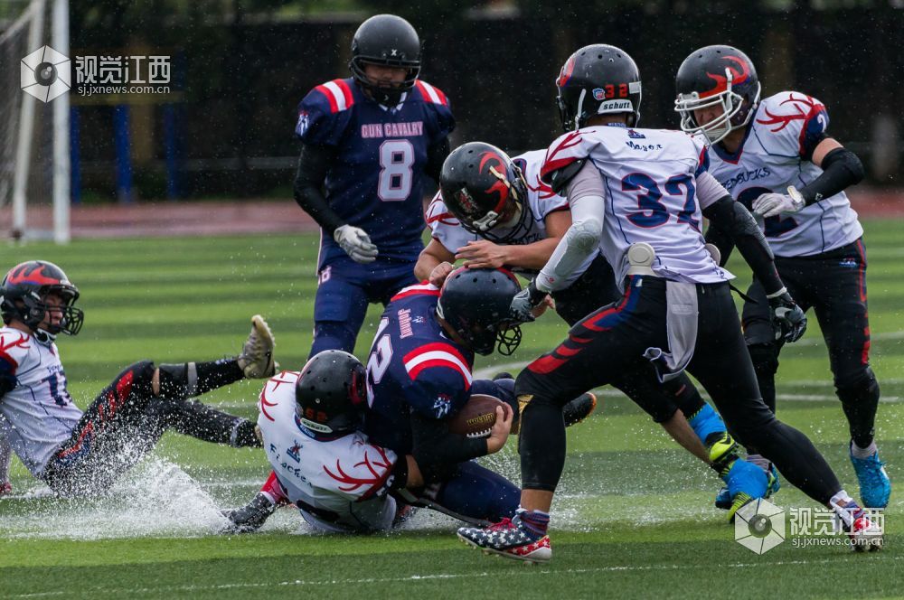 6月9日下午,城市碗美式橄榄球全国联赛2018赛季常规赛在南昌再燃战火。南昌枪骑兵坐镇主场迎战远道而来的温州赤鹿队,经过三个多小时的鏖战,枪骑兵以36:19战胜温州赤鹿,成功复仇,捍卫主场不败战绩。