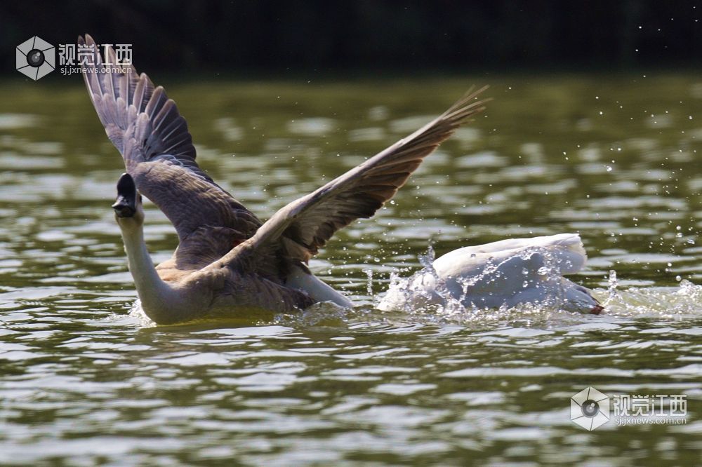 南昌艾溪湖湿地公园天鹅们的日常生活场景。