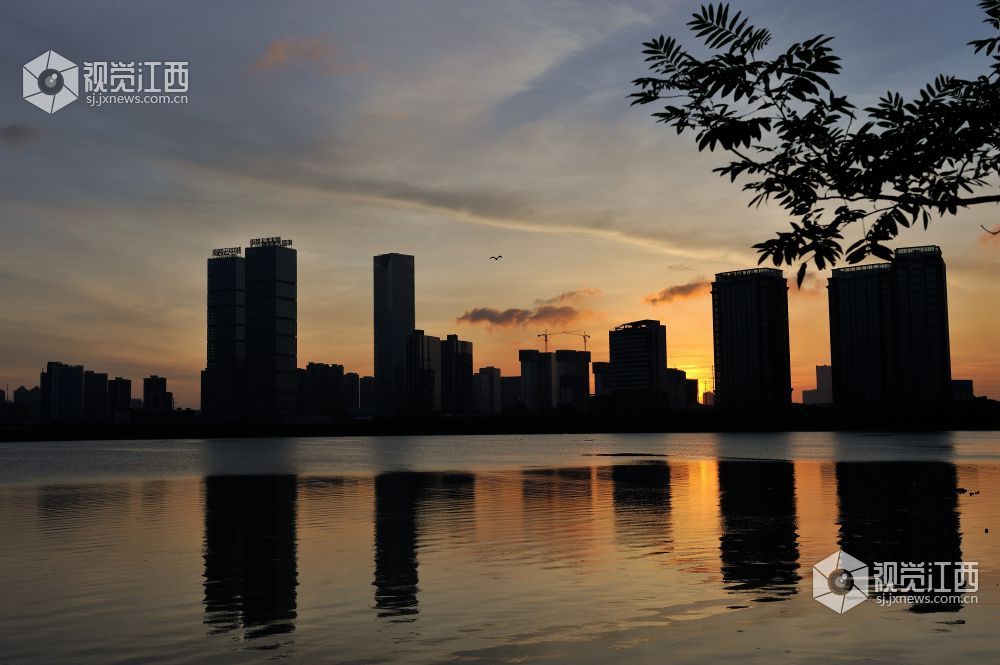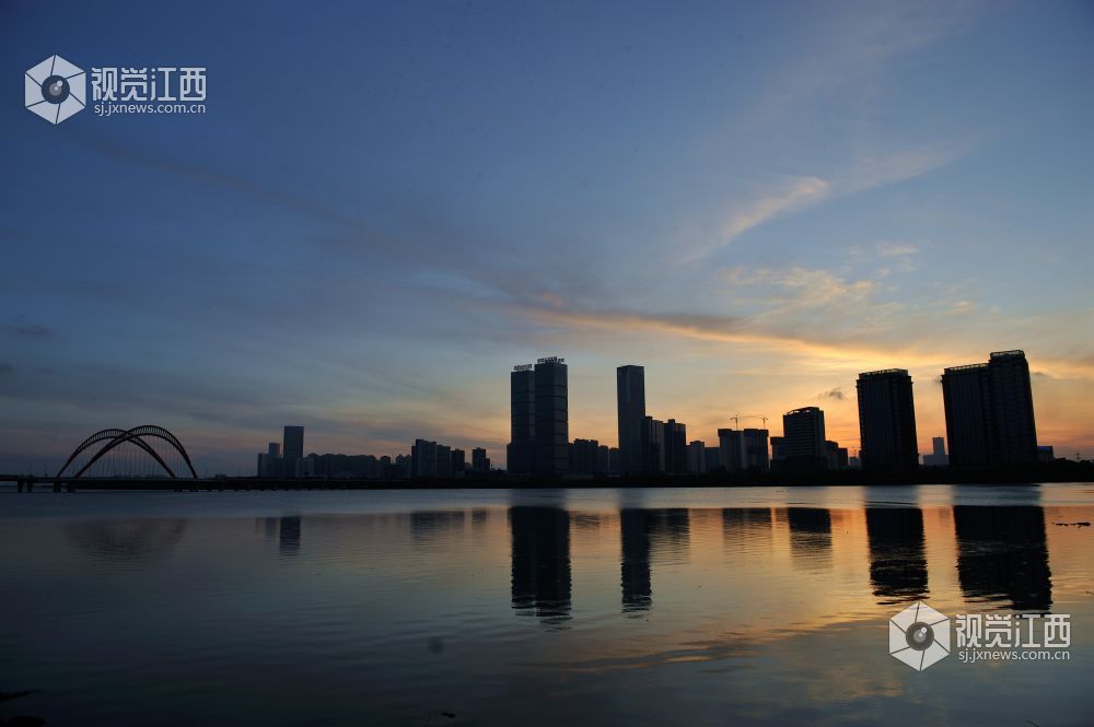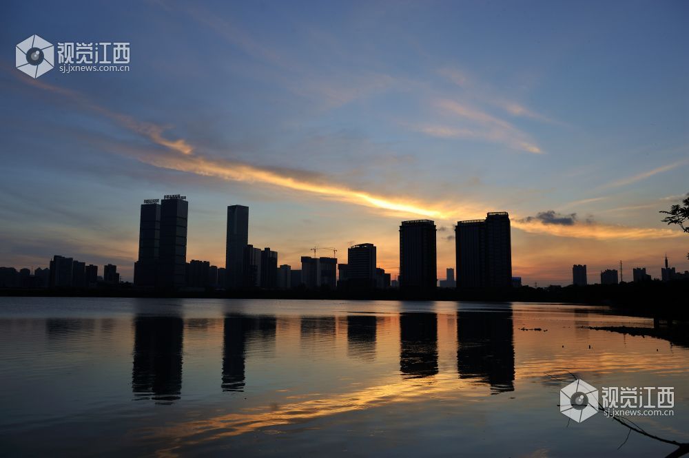 南昌市艾溪湖清晨时分天空、湖面常常景色迷人。