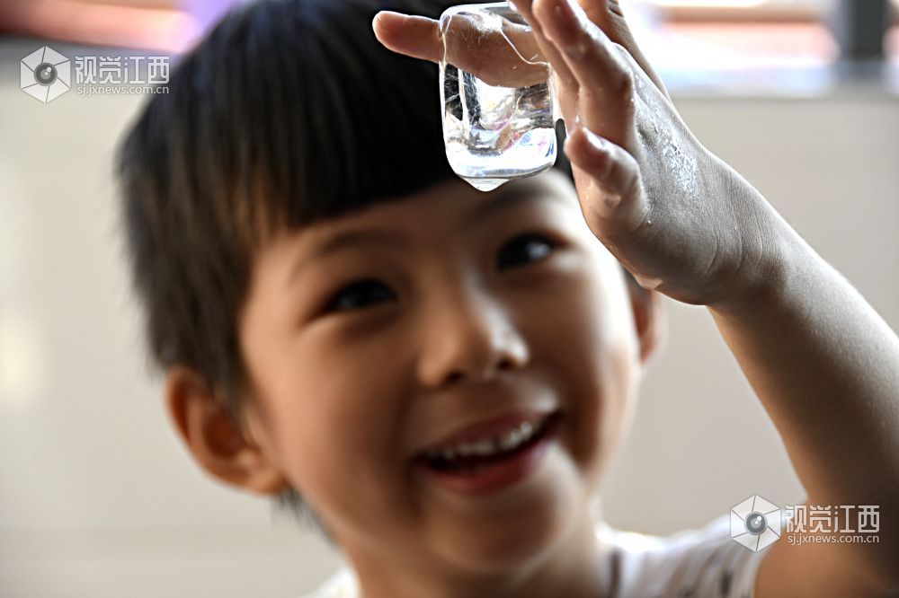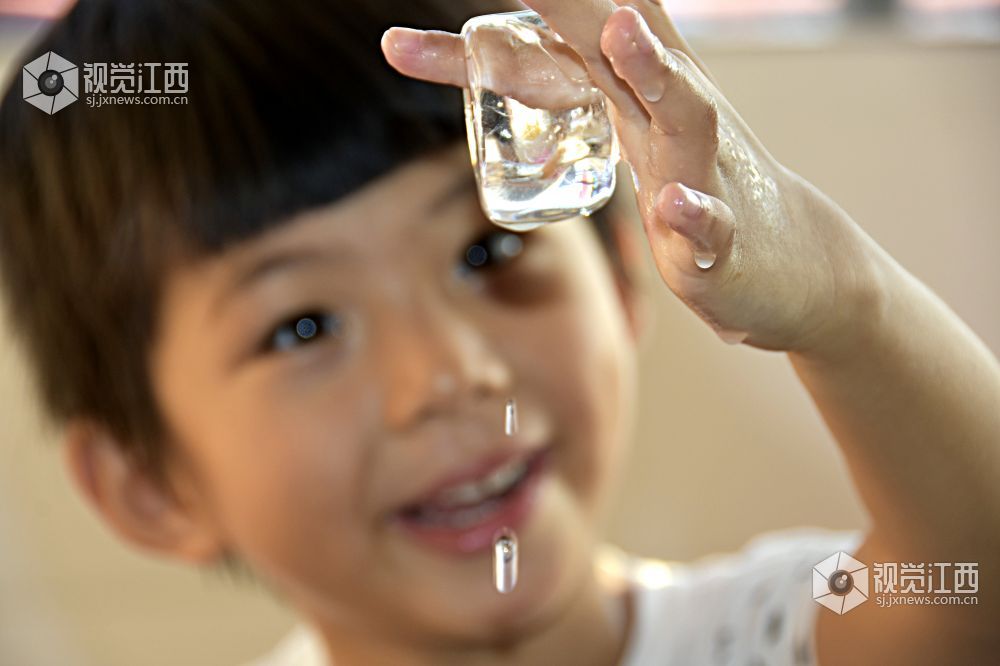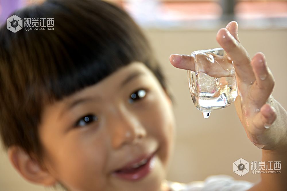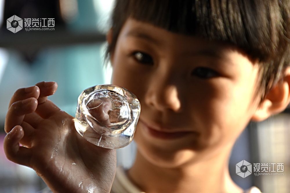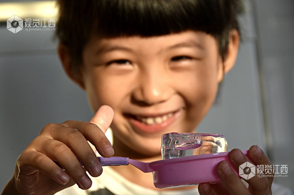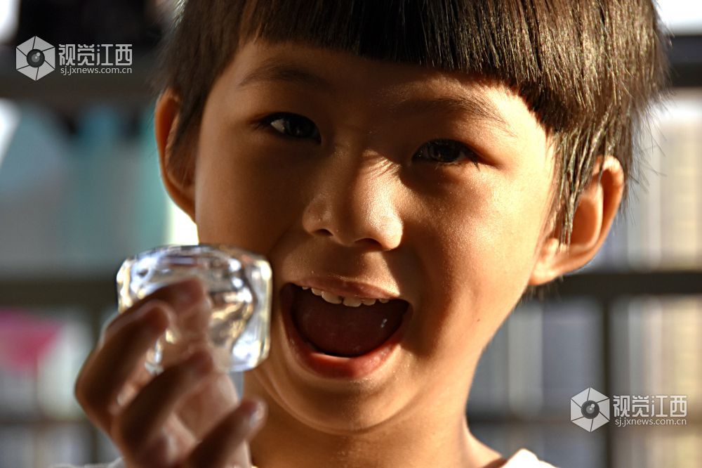 8月26日,鄱阳县鄱阳镇一幼童在表演展示自已的冰柱变冰戒子,此情此景童趣浓浓。