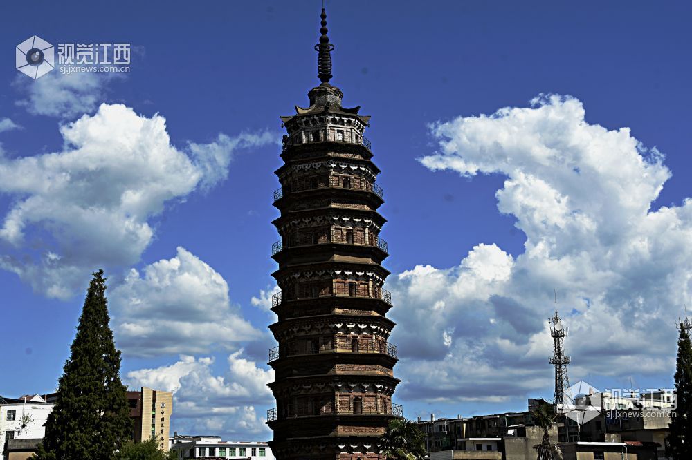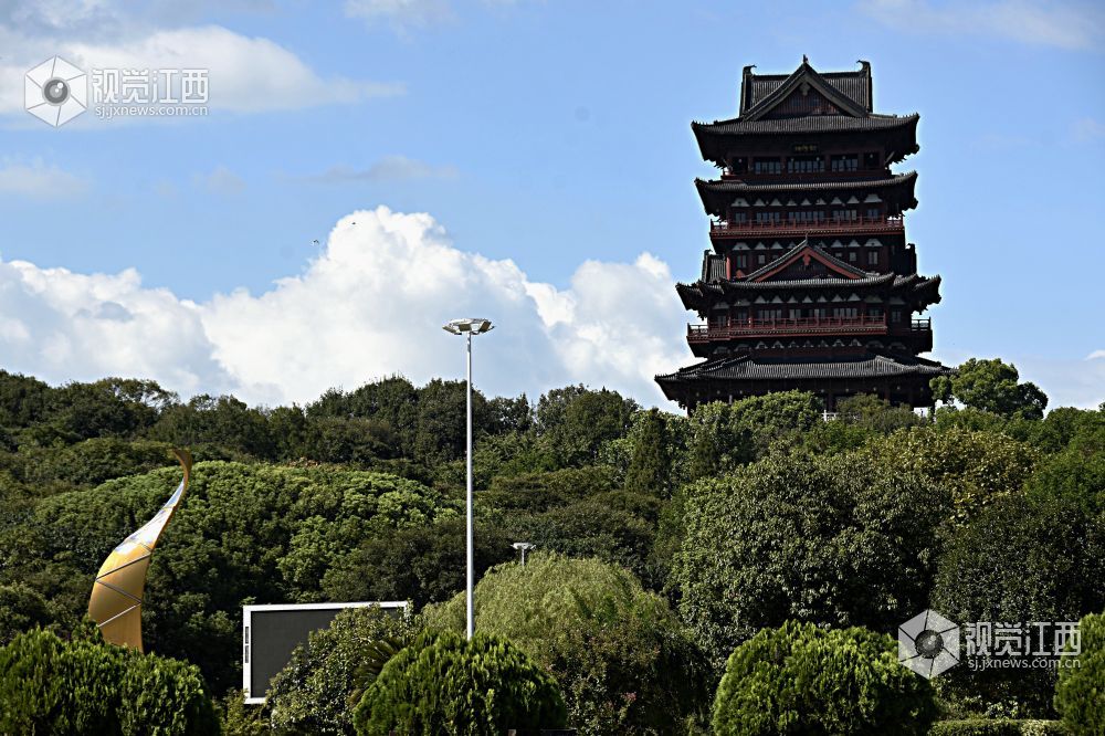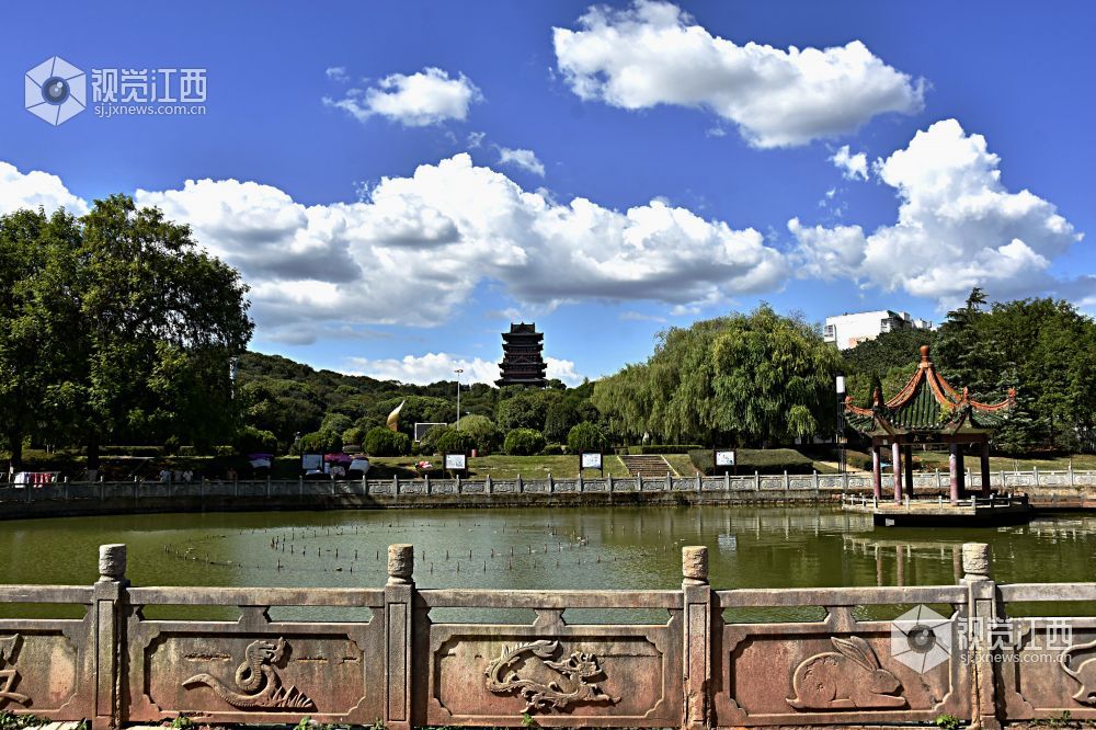 8月29日,江西省鄱阳县城出现初秋持续多日的蓝天白云映湖城之美景。