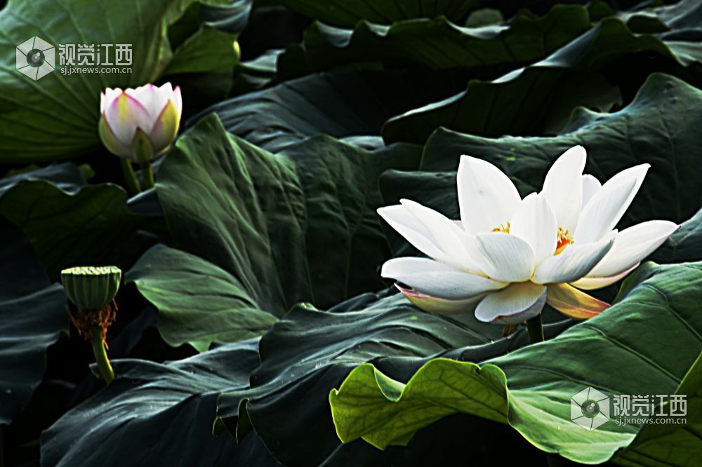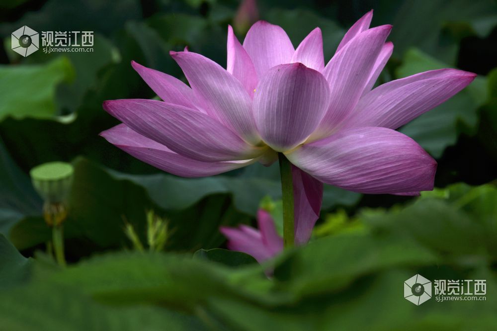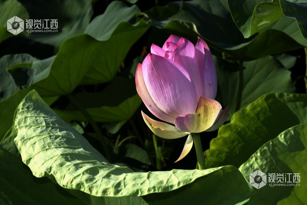 9月1日,江西省鄱阳县饶州街道办亊处西门湖荷塘拍摄的荷花。盛夏各类荷花节巳退去,虽是初秋,但荷塘里的荷花仍挺立娇媚。