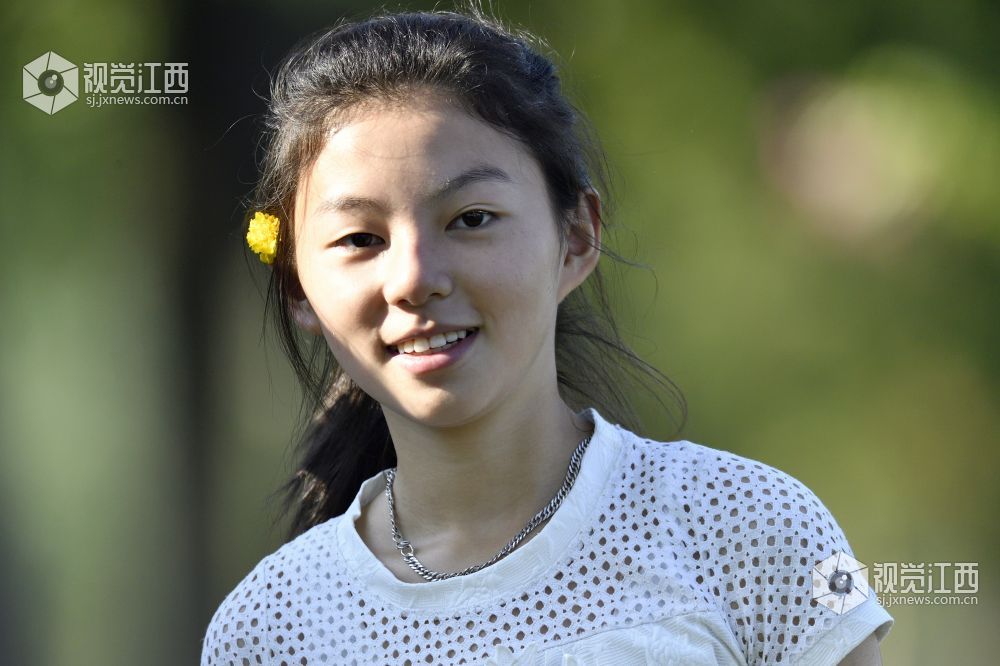星期日,在南昌市艾溪湖湿地公园游玩的女学生。