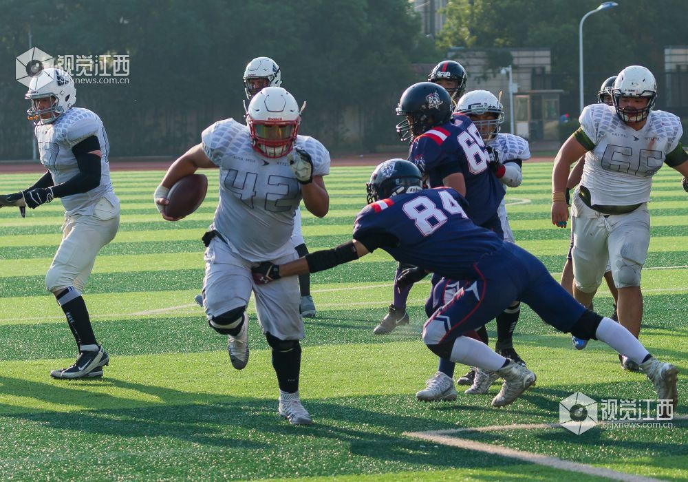 9月15日,“城市碗”全国橄榄球联赛南昌枪骑兵主场迎战天津黑帆,在36℃高温下南昌枪骑兵16:6战胜天津黑帆,保持了主场全胜的战绩。
