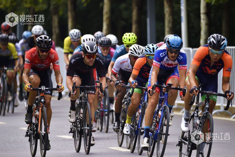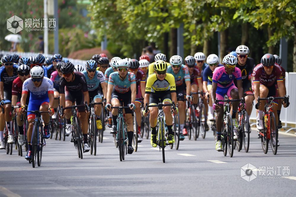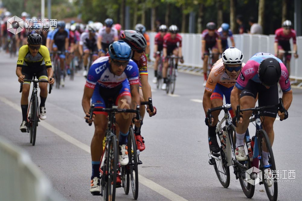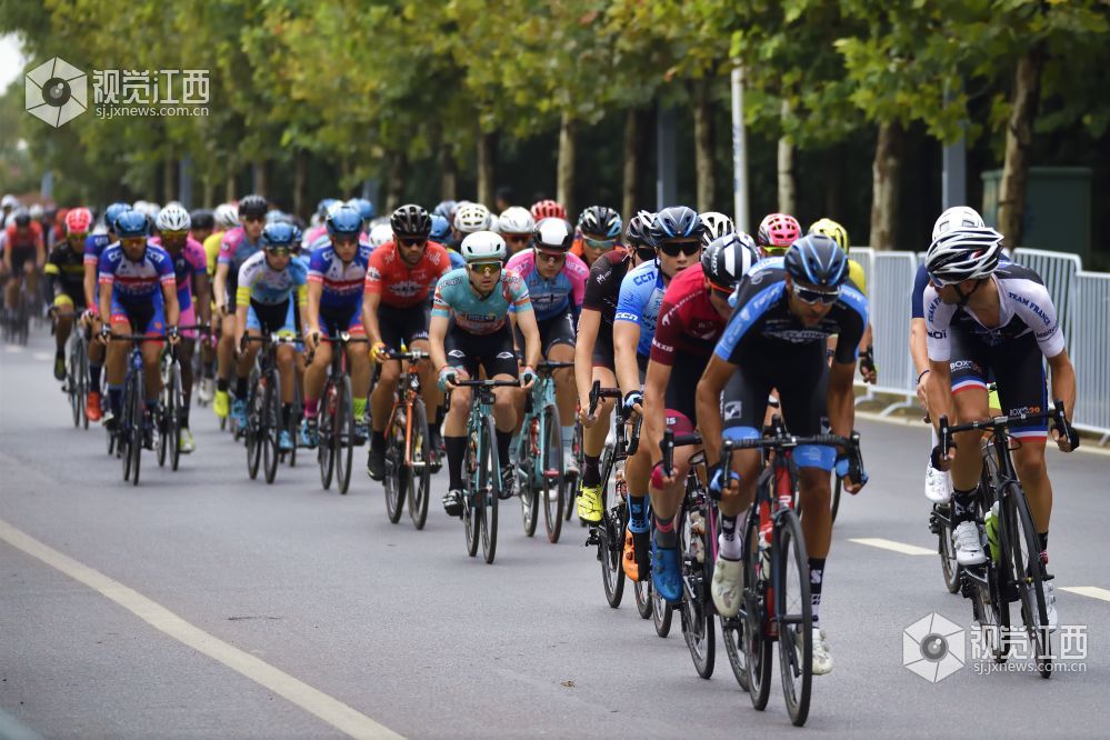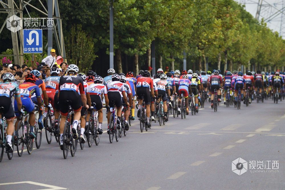 记录环鄱阳湖国际自行车大赛(南昌站)激烈竞逐的精彩场景