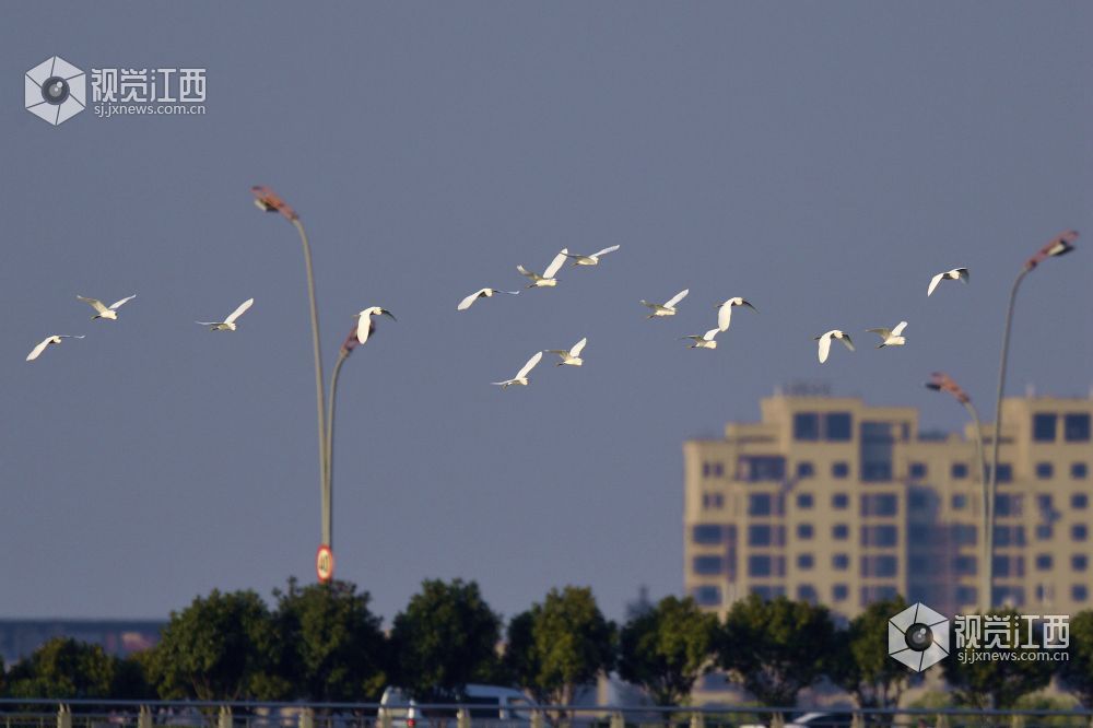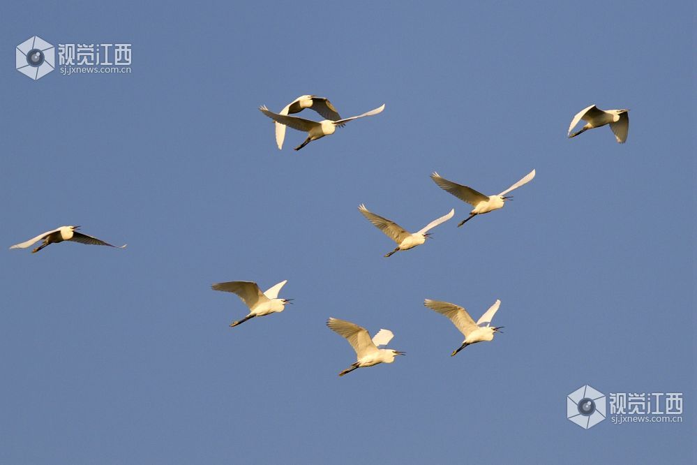 一大群白鹭在南昌艾溪湖的上空畅快的飞翔,让人兴奋不巳。