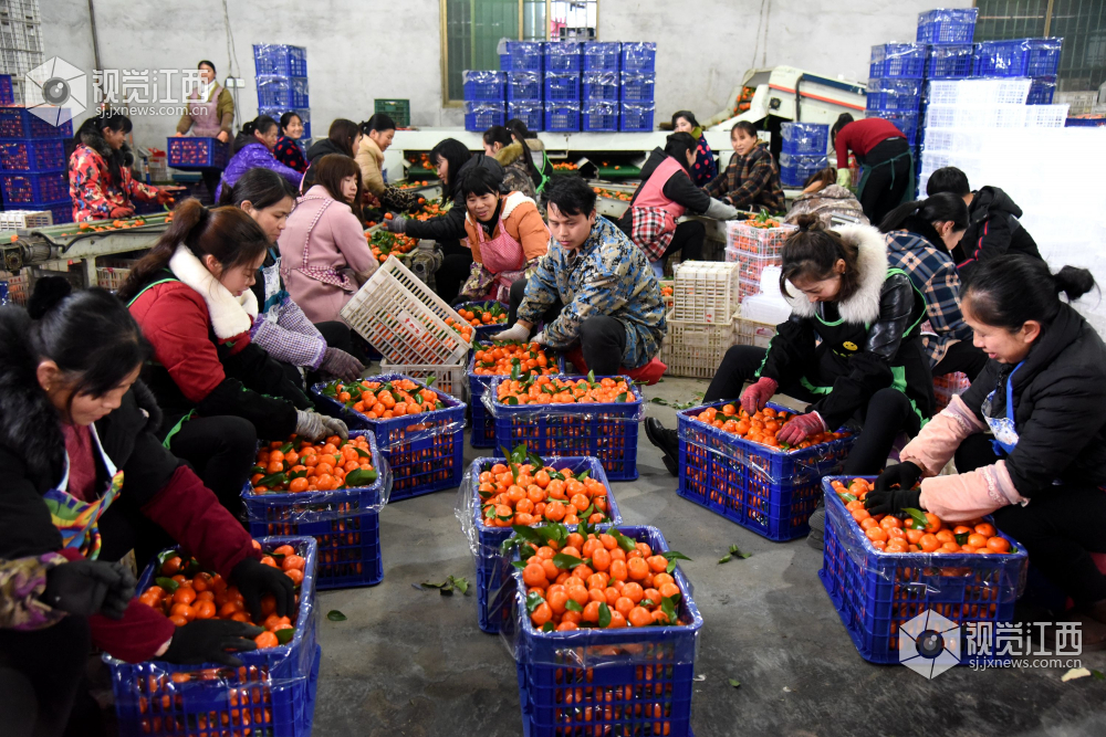 2019年2月2日,腊月二十八,南丰县市山镇翠云村年长发货果品销售专业合作社组织农民工分拣、加工包装南丰蜜桔,准备销往全国各地,以满足春节市场消费者的需求。去年南丰县70万亩蜜橘又迎来丰收年,产量达20亿斤。为广拓蜜桔销路,做到产销两旺,南丰县鼓励桔农到国内外闯市场,以满足市场需求。近几年来,该县从事南丰蜜桔销售、包装、运输的农村经纪人队伍达5万余人,他们每年销售的蜜桔占该县蜜桔总产量的90%以上。