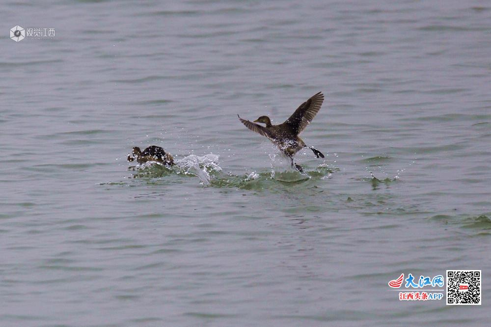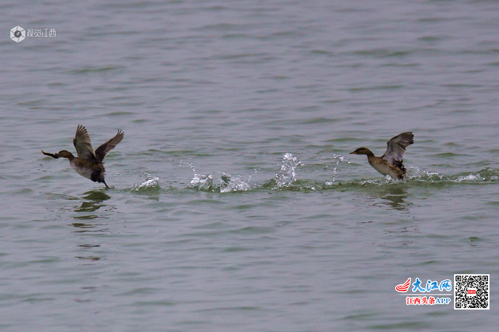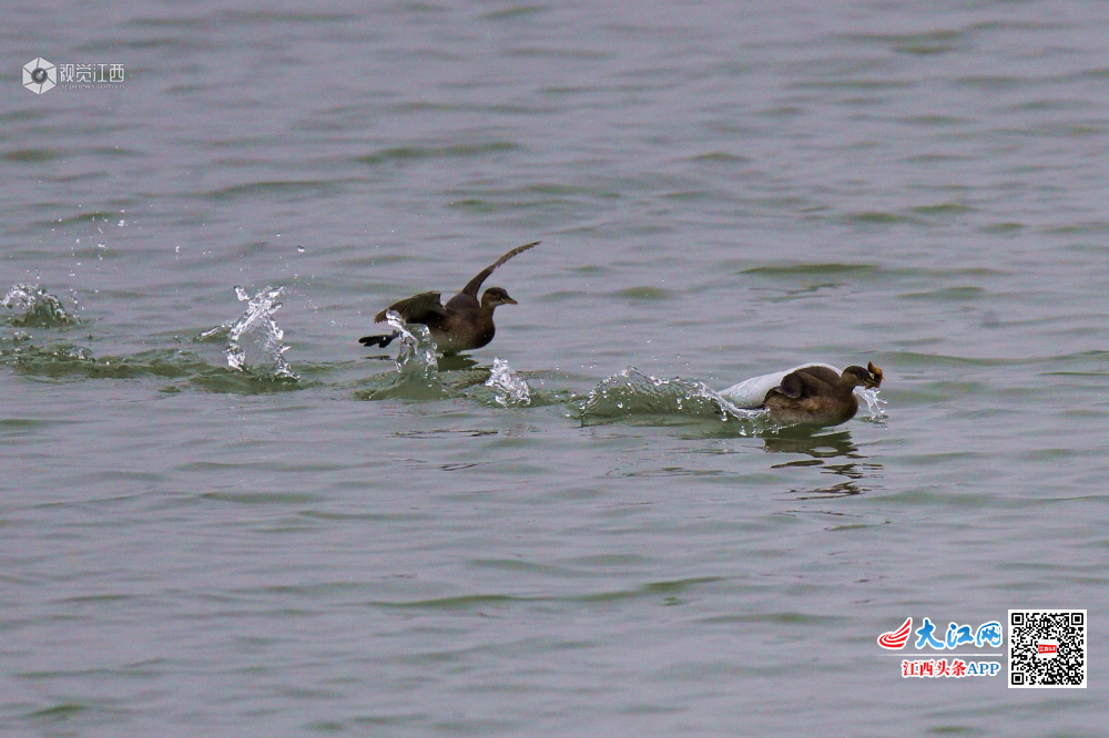 2月24日,小水鸟在南昌市艾溪湖互相追逐,激烈抢夺食物。