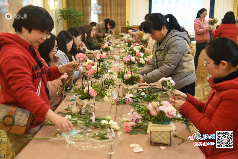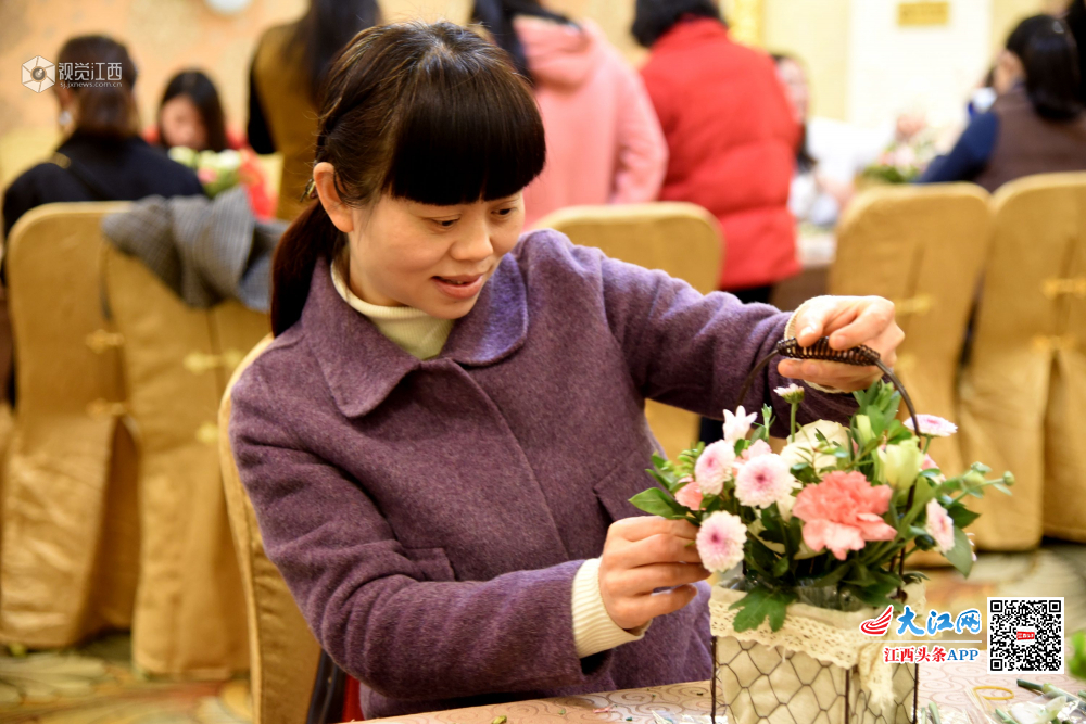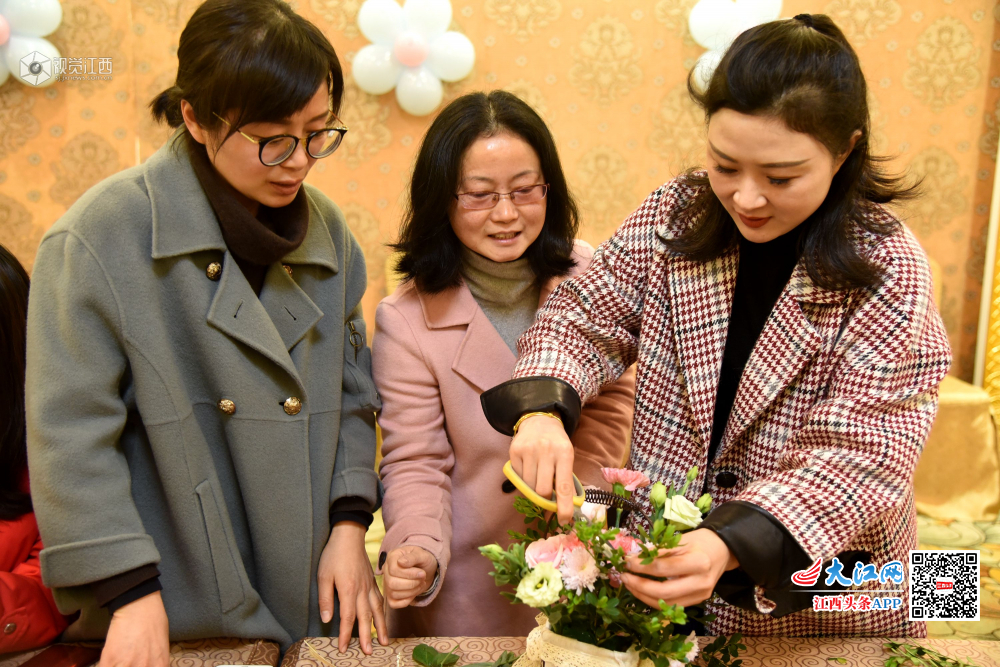 3月8日,南丰县妇联在国安大酒店开展“春暖花开 诗情画艺”活动,来自社会各界的40余名妇女代表参加了插花艺术才艺学习,喜迎第109个“三八”国际劳动妇女节的到来。