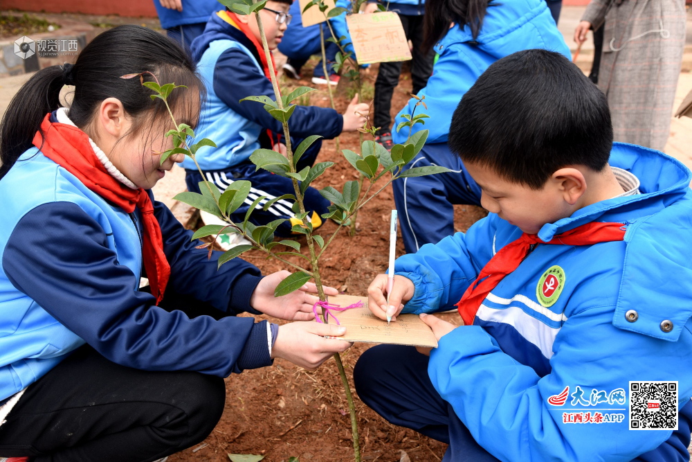 为迎接一年一度的植树节到来,3月11日,南丰县子固小学的学生在老师的带领下,兴致勃勃地来到市山镇梓和村,与结对的市山镇梓和小学五年级学生一道栽树。同学们有的分发树苗,有的挖坑,有的松土,有的填土,有的浇水,经过一个多小时的劳动,树苗全部栽种完毕,植树活动如火如荼进行着。最后,同学们还开展了认领树苗活动,在树苗上挂上结对同学的认领牌,做到认领一棵树苗,种下一片希望。
