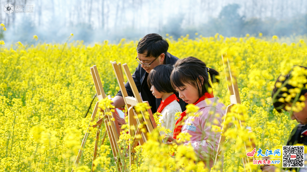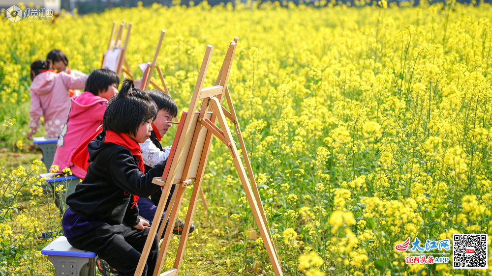 春暖花开,正是孩子们亲近自然的好时节。3月20日,江西省新余市仙女湖区河下镇划江小学的小学生们在老师带领下来到乡野,用画笔描绘春天。孩子们以盛开的油菜花田为素材,用作画的方式亲近自然,感受春天的气息。