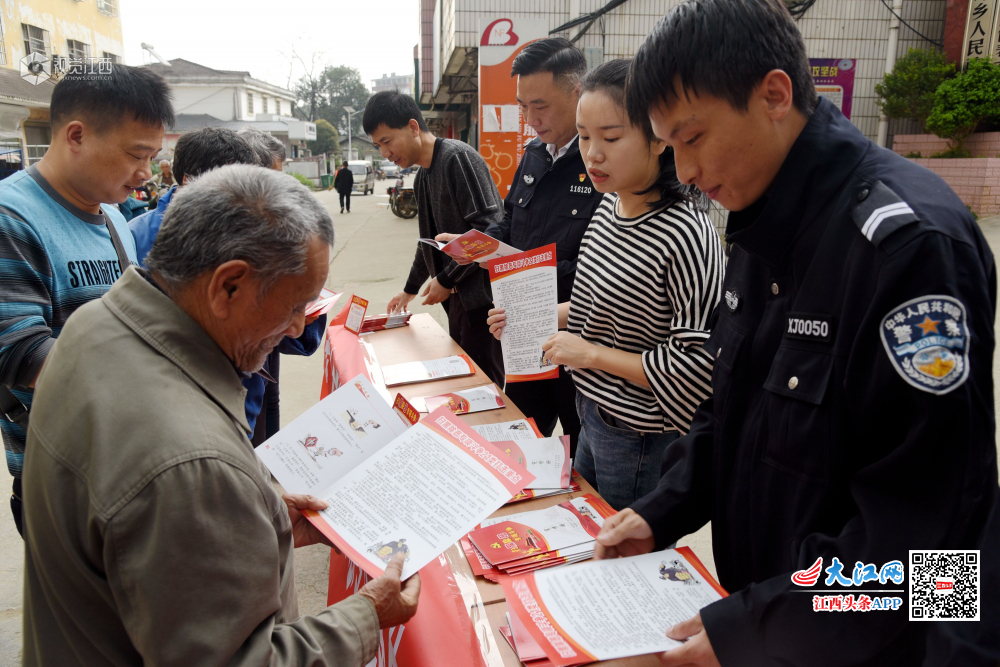 3月21日,南丰县东坪乡综治办工作人员和东坪派出所民警在向农民群众宣传讲解“扫黑除恶”专项斗争内容,提高农村群众对“扫黑除恶”专项斗争的知晓率和参与率。