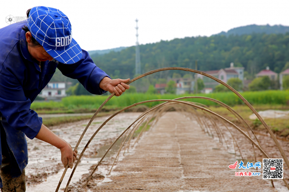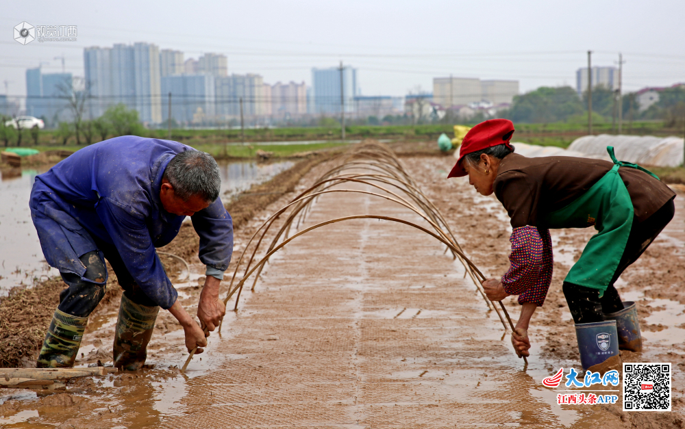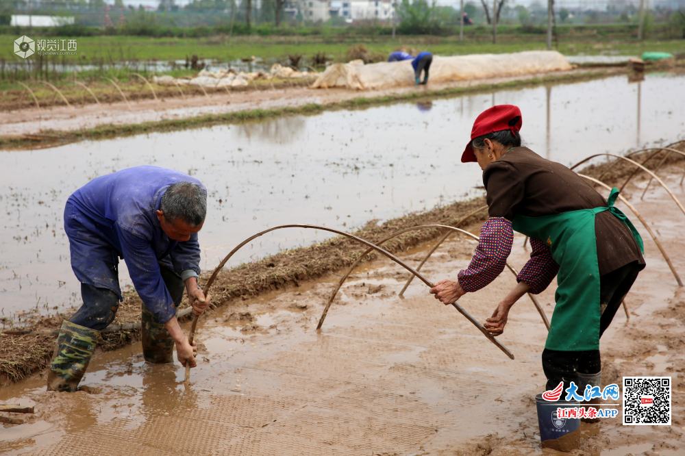 3月26日,江西省泰和县石狮村农民正在秧田里插竹签、盖地膜、赶春播、育好秧,“秧好一半稻,壮秧产量高。”眼下虽已过春分,还是乍暖还寒,我国亚热带水稻种植地区农民采用地膜育秧方法抢农时,以提前早稻成熟时间,保障晚稻的种植。