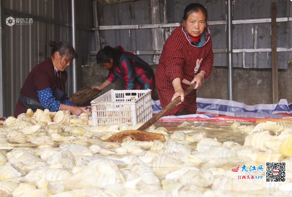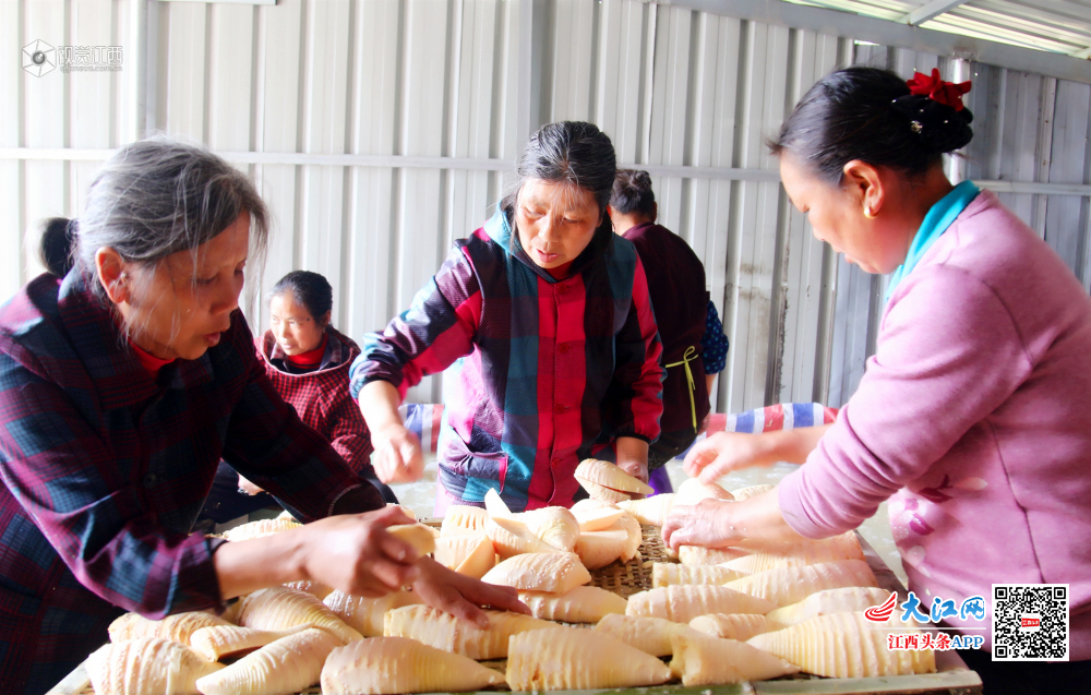 3月28日,江西省遂川县枚江镇高升村村民们正在加工春笋干。清明前后,正值竹笋的上市旺季,遂川县当地农民除了销售鲜笋外,还从事竹笋深加工业,通过对竹笋进行深加工外销,销路供不应求。仅春笋深加工一项,就能实现4万元以上的收入,同时也带动了农户就业实现增收。