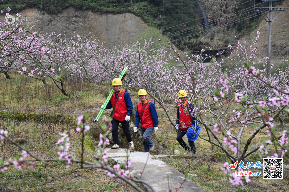 3月27日,江西遂川县供电公司人员在戴家埔乡川桃村黄桃基地巡视电力线路。春季是农民春耕最忙的时节,江西省遂川供电部门启动“春季安全用电检查田间地头行”专项行动,重点安排全县大棚蔬菜、果业基地及田间地头灌溉线路、设备专项巡视及 “问诊”,及时帮助农户解决生产用电难题,确保农民春灌备耕期间用上安全可靠的放心电。