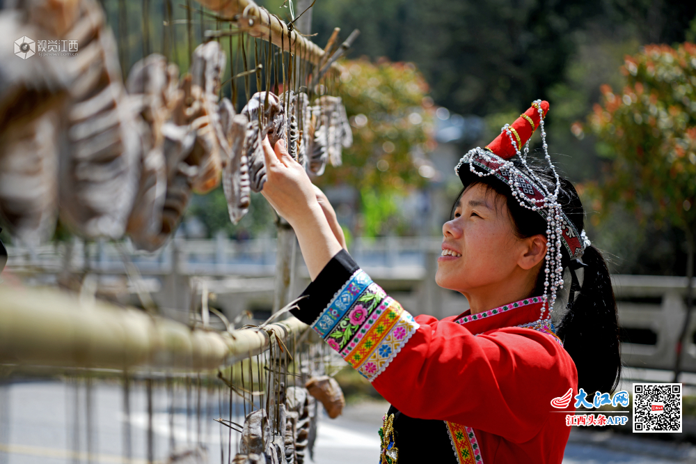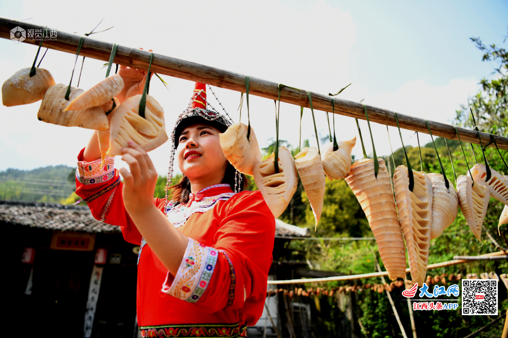 2019年3月30日,在江西省上饶市铅山县太源畲族乡,畲民在晒春笋。该乡毛竹资源丰富,入春以来,雨后春笋茁壮成长,畲民会把多余的春笋挖出,做成各种畲乡美食。每年春天,晒春笋就成了畲乡一道亮丽的风景线。更是畲民增收一条途径,卖春笋相关产品每年可实现户均增收2000余元。