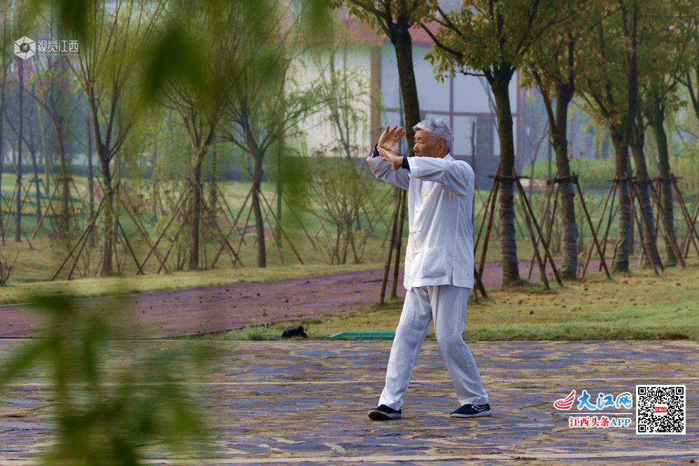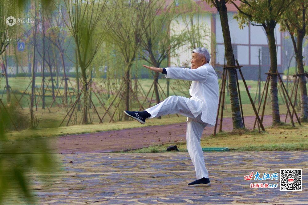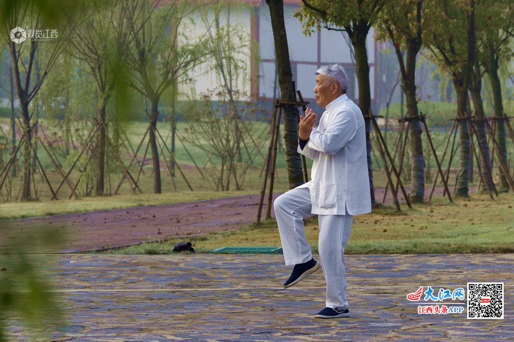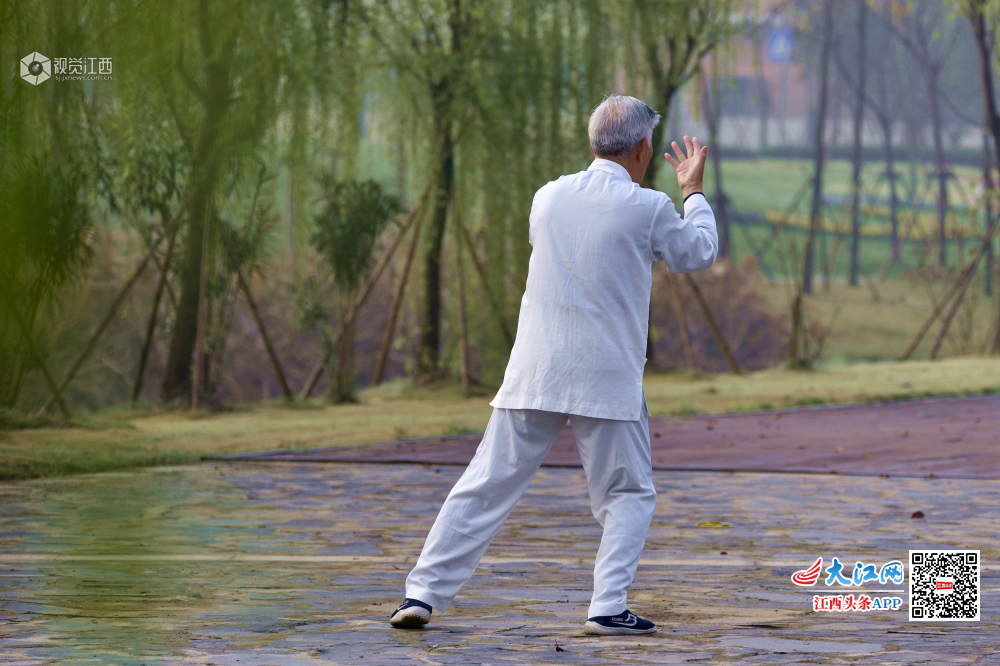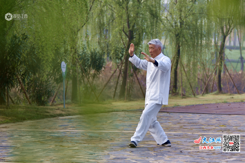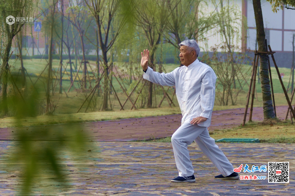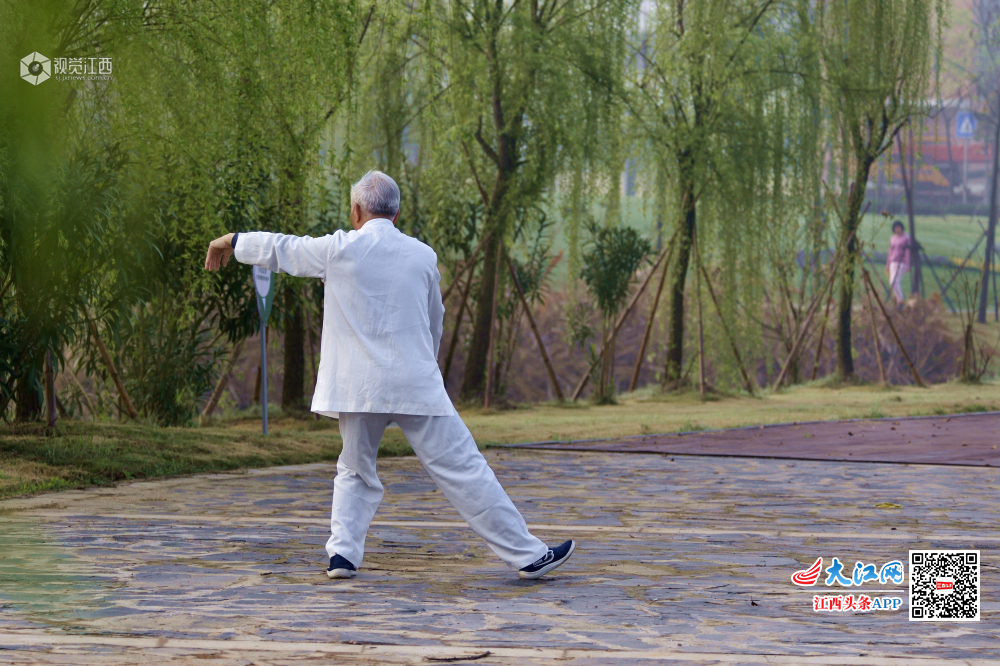 3月30日早晨,一位老者在湿地公园习武,一板一眼的认真态度令我肃然起敬。