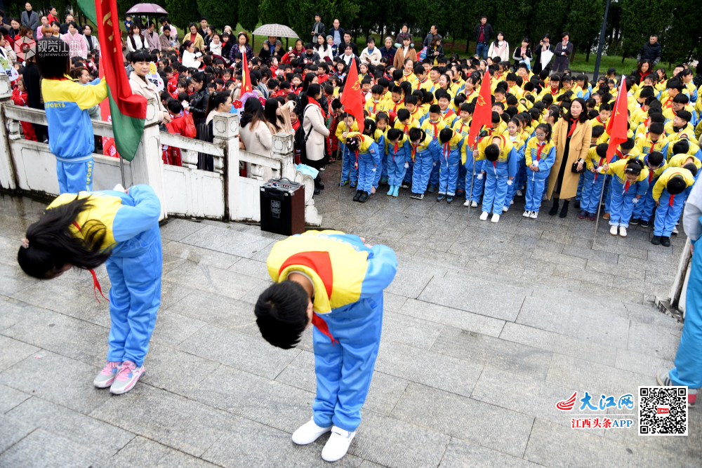 4月3日,天气阴沉,下着小雨,江西省南丰县教师进修学校附属小学组织四年级近500名学生,来到醒侬公园革命烈士纪念碑前,开展“青春永向党 建功新时代”清明节特别主题队日活动,以此为契机,对少先队员们进行爱国主义和革命传统教育,使队员不忘革命先烈,传承红色精神。