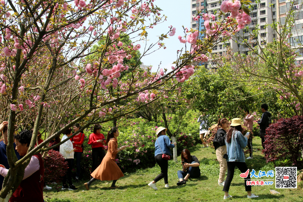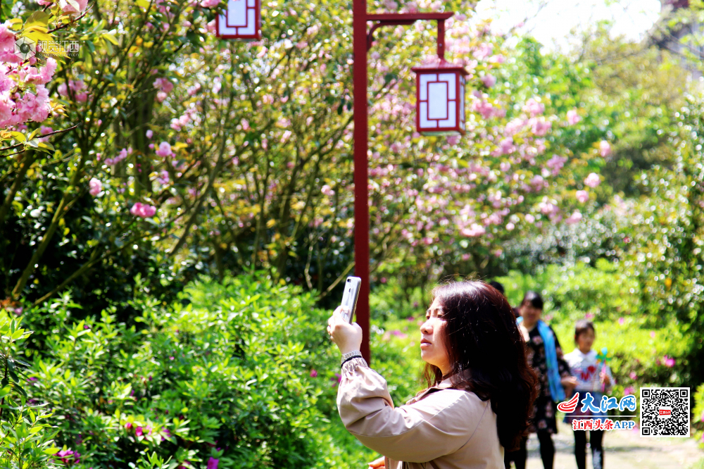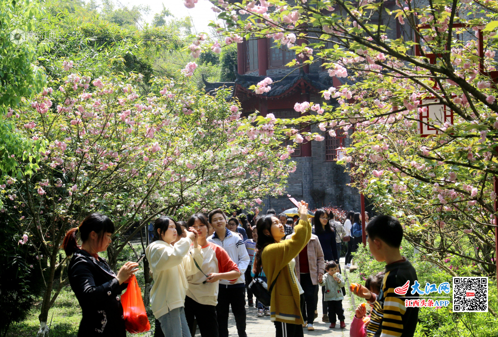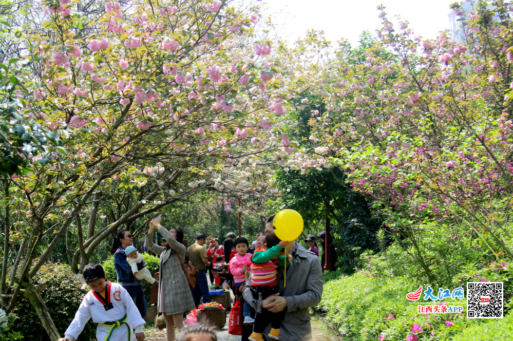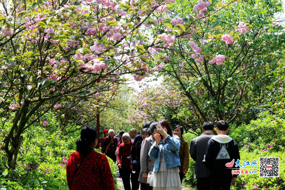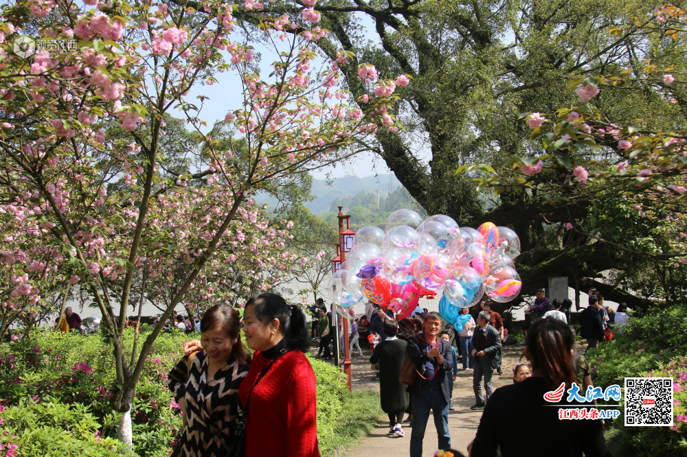 4月7日,江西省赣县游客们游走在如痴如醉十里大道樱花公园。春日里,江西省赣县樱花公园十里大道樱花竞相开放,一朵朵、一丛丛汇聚成花的海洋,如云似霞,分外妖娆,点缀得如诗如画,吸引了各地成千上万的游客慕名前来赏花。