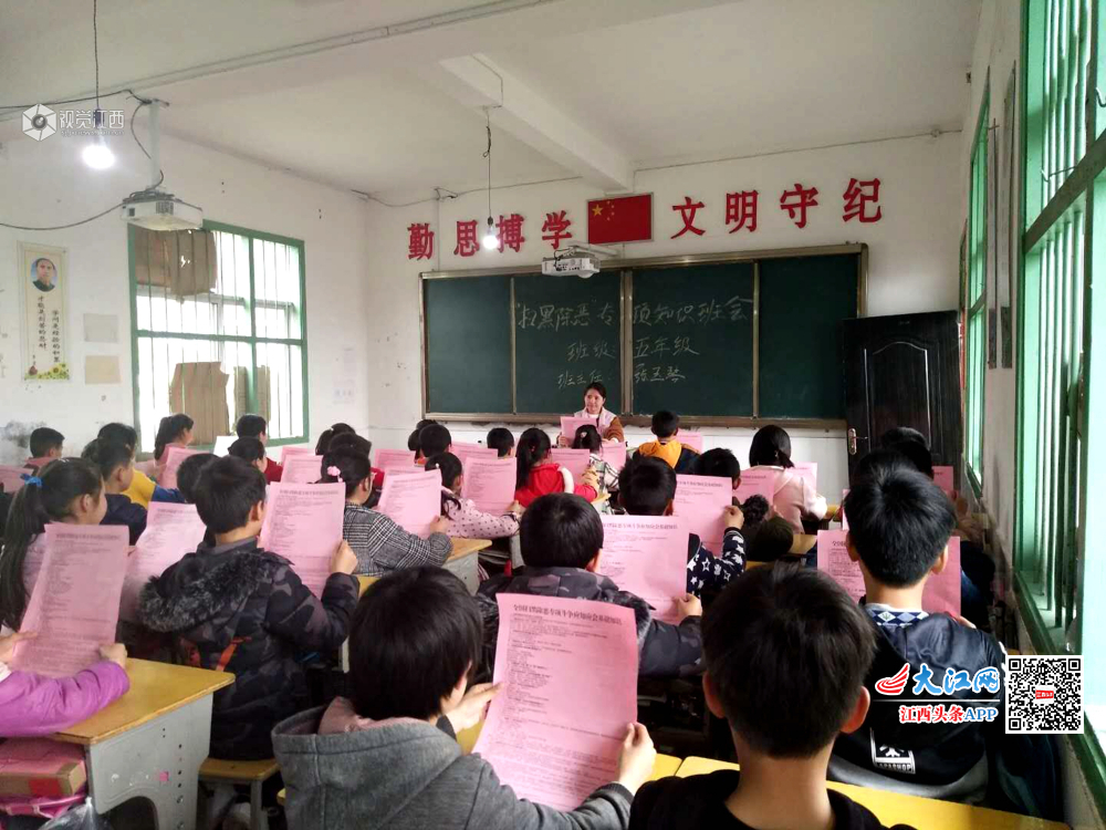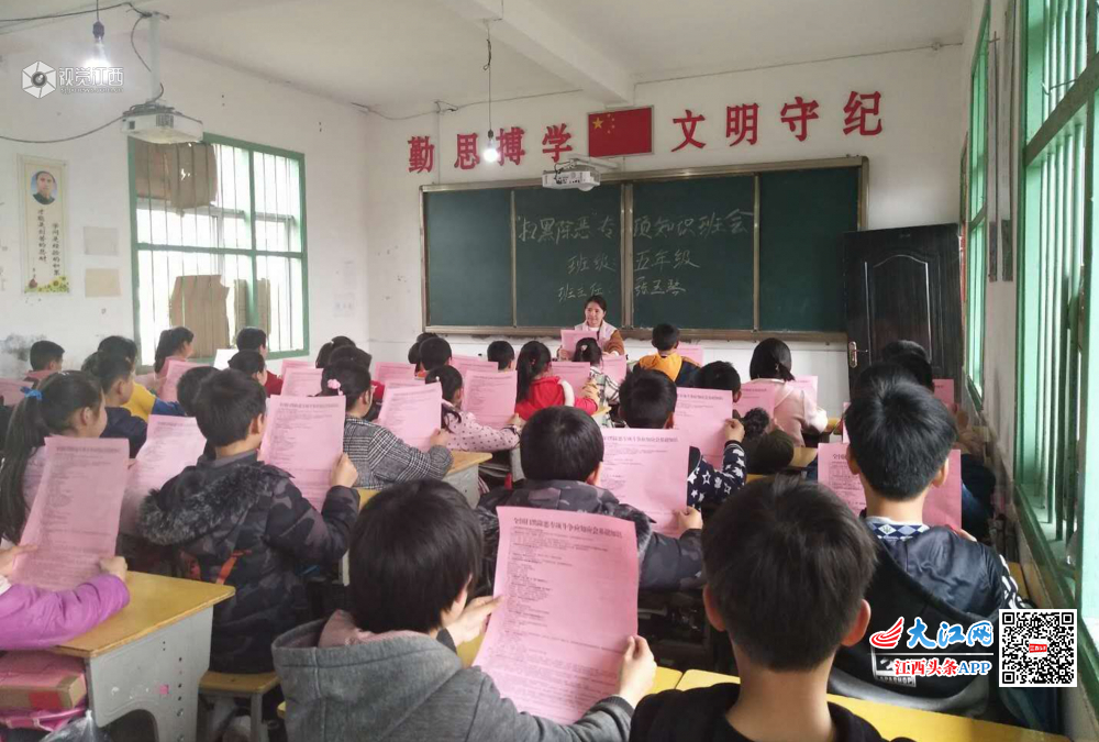 2019年4月9日,江西省遂川县大坑乡在各中小学将扫黑除恶专项斗争知识走进课堂。据悉,江西省遂川县山区乡镇将扫黑除恶专项斗争知识走进课堂,以孩子对扫黑除恶知识的知晓度,回家争当扫黑除恶宣传小卫士,向家长和爷爷奶奶宣传,做到与乡村干部宣传无缝对接,不断推动“扫黑除恶”专项斗争向纵深开展。