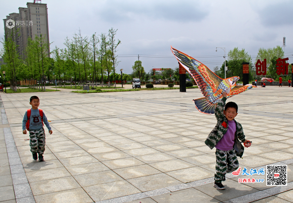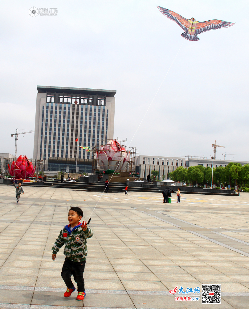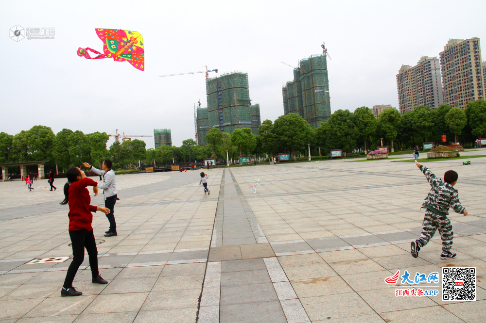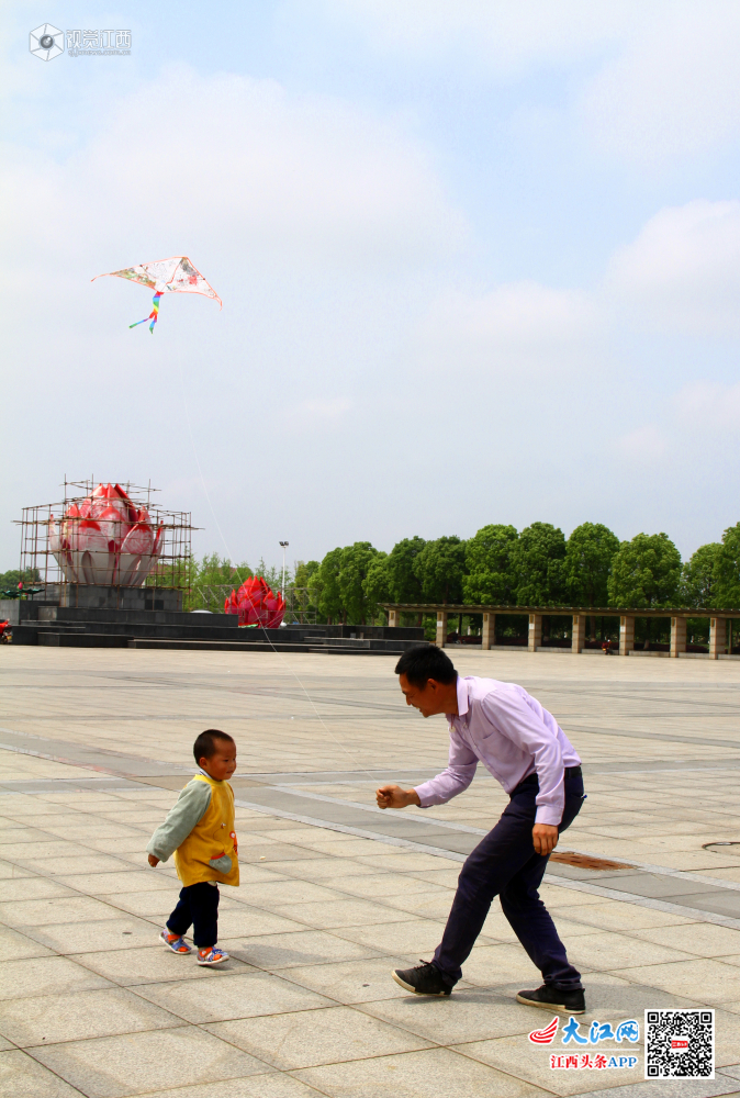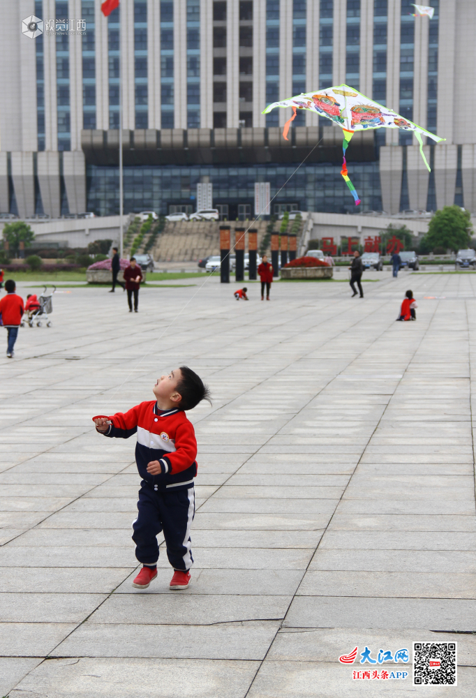 4月12日,江西泰和县一幼儿园来到市民公园的广场上举行的亲子活动,家长和孩子们一起放风筝,体会春天的乐趣。