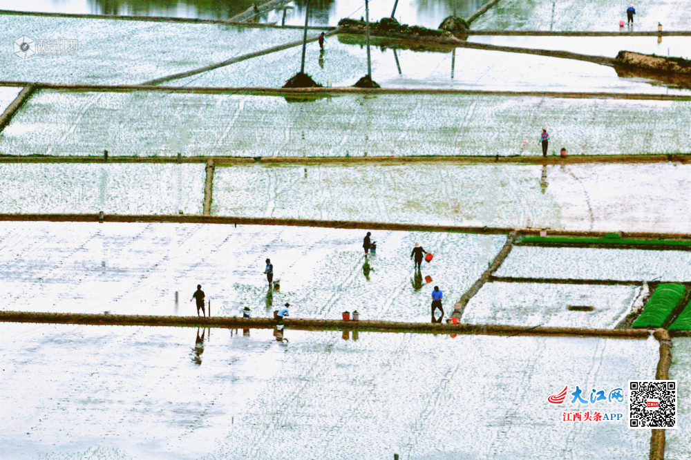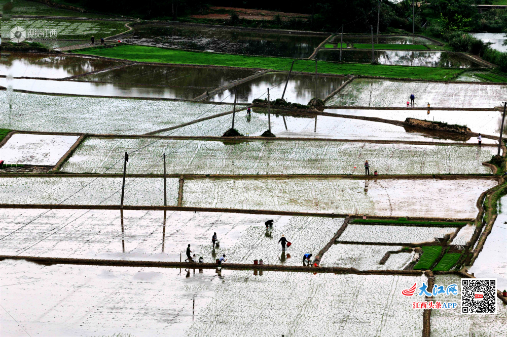 4月17日,江西省遂川县珠田乡农民在田里抛秧春插。时下,江西省遂川进入早稻插秧时节,当地农民抓住晴好天气,抢抓农耕田插秧,田间地头处处呈现忙碌的身影。
