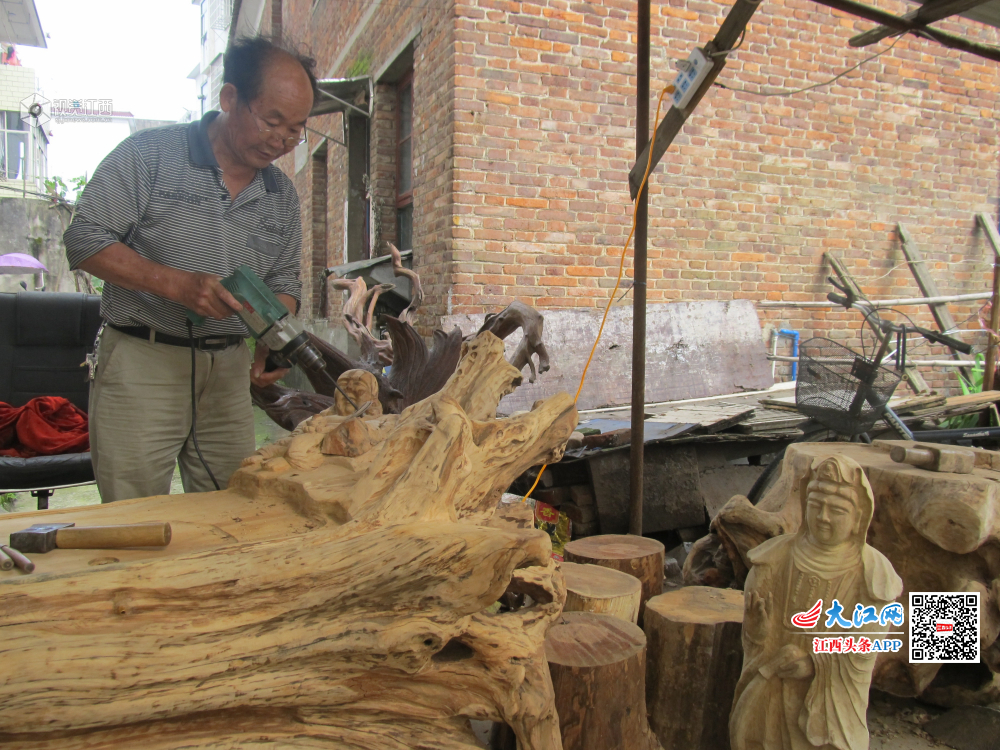 “别看这朽木树根,雕成工艺品,能卖好几千块钱呢”。4月18日,家住安福县北华山林场小区的文善栋根雕师对笔者说的肺腑之言。安福有着丰富形状奇异的废弃树根,当地农民积极收集各种废弃的树根、树蔸、灌木等废弃材料,通过雕刻造型,成为精美的工艺品,使其再生利用,创造价值,脱贫致富。