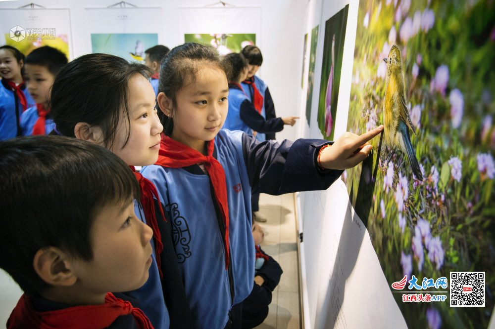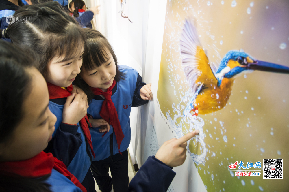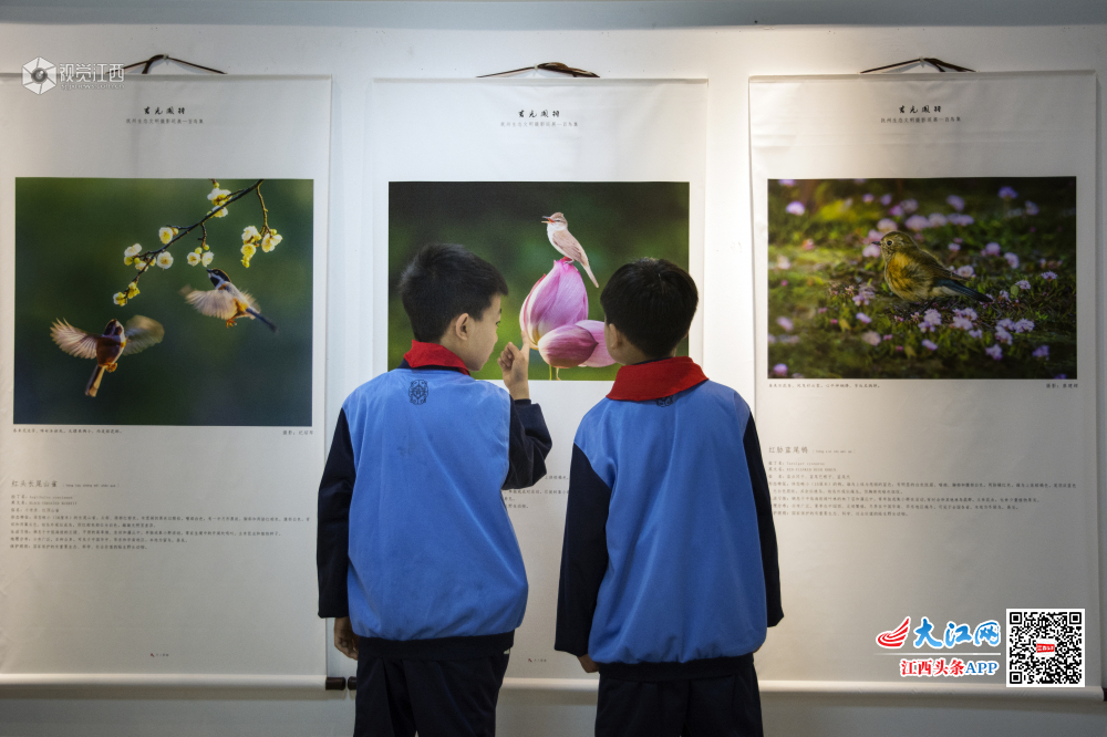 4月17日,南丰县组织各中小学校学生来到南丰二中参观百鸟图。