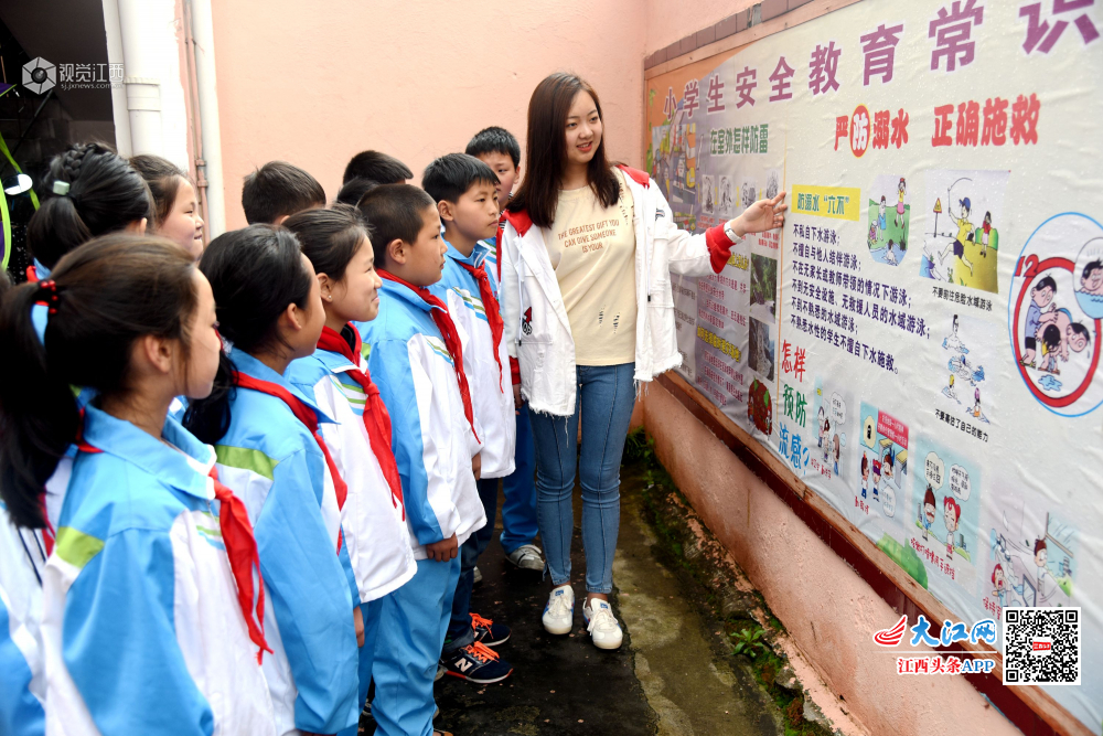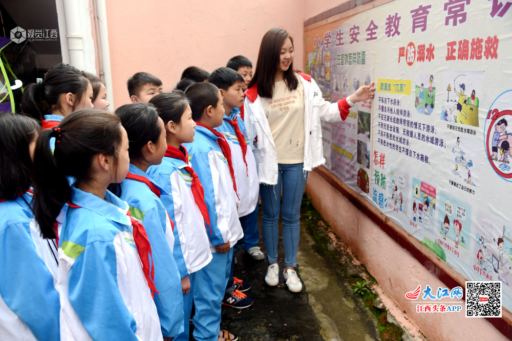 2019年4月22日,江西省南丰县市山中心小学教师对学生进行防溺水教育,提高学生的安全意识,确保汛期安全。