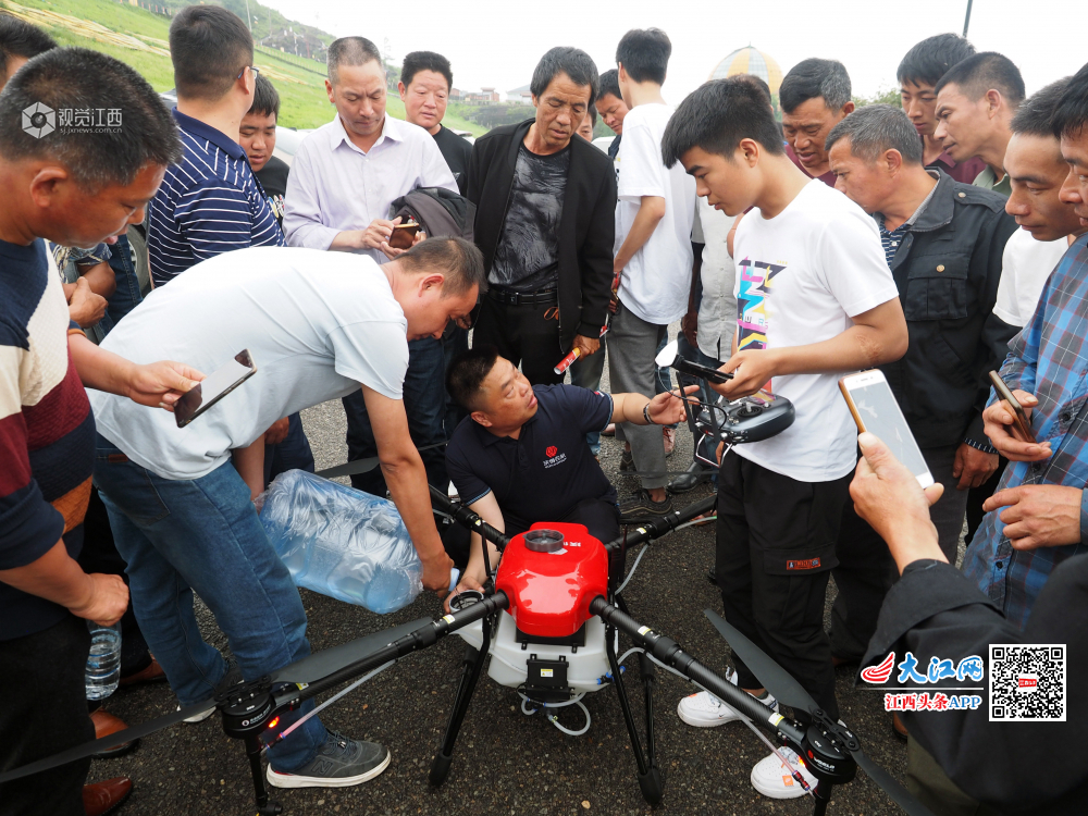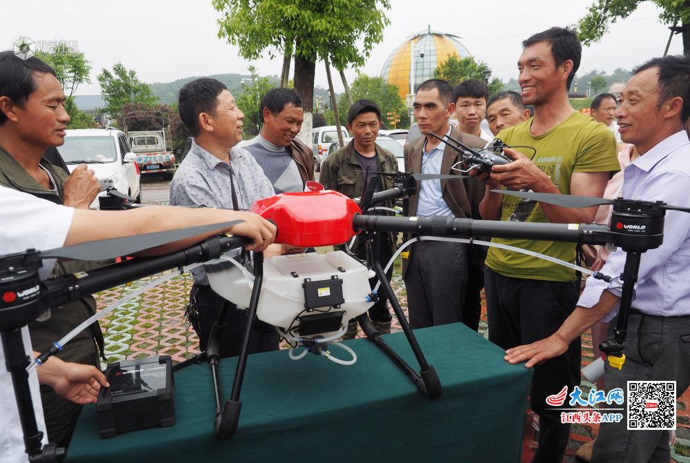 无人机喷农药........“牛”!4月22日,农机技术人员正在江西省南丰县市山镇包坊村向农民群众演示无人机喷洒农药安全操作技术要领。