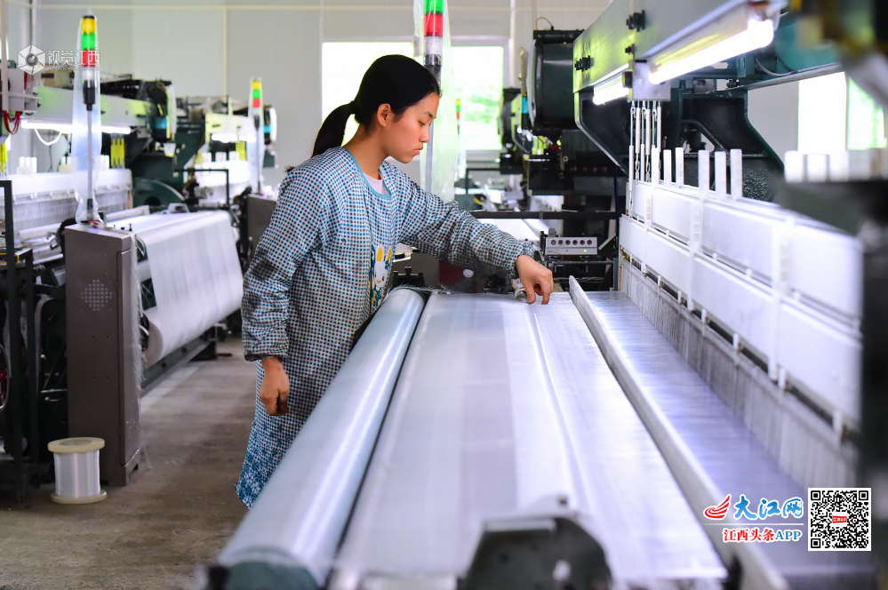 该“扶贫车间”现有织网机组35台,日织网量约2万平方米,年产值达600多万元,带动34名贫困户实现就业增收。