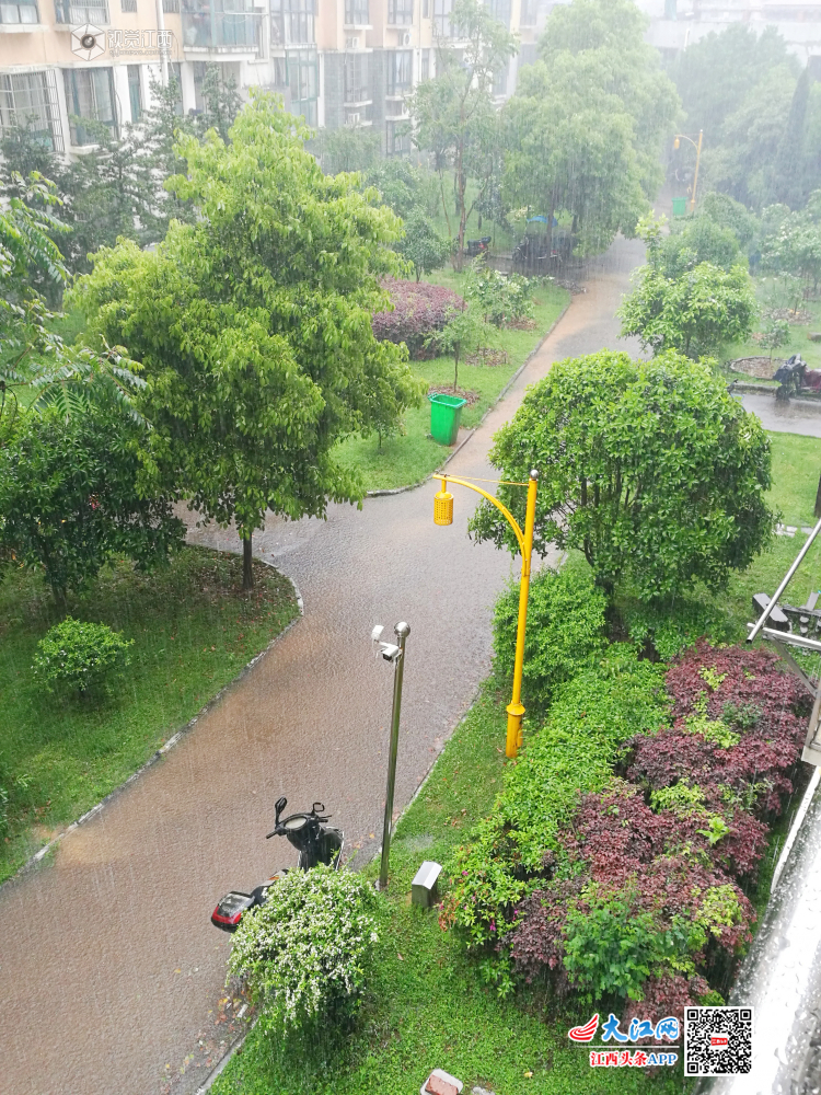 4月24日中午,上饶市区降下一场暴雨,家住现代城小区的笔者通过手机拍照记录下这场暴雨的来势凶猛,给上饶市民生活带来了不便。