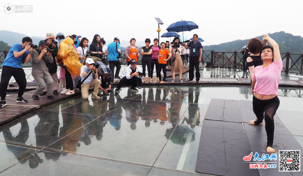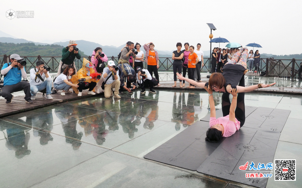 2019年4月24日,瑜伽爱好者正在江西省南丰县观必上橘海景区观景台上秀瑜伽,吸引了许多前来踏春赏花的游客驻足欣赏,拍照留影。四月的南丰,70万亩橘花竞相绽放,清香优雅,生态迷人。南丰县以生态促旅游,推出“橘花香、橘园游”洗肺之旅系列活动。让游客在体味当地民俗、美食的同时,感受满城橘花飘香的美景,乐享生态红利。