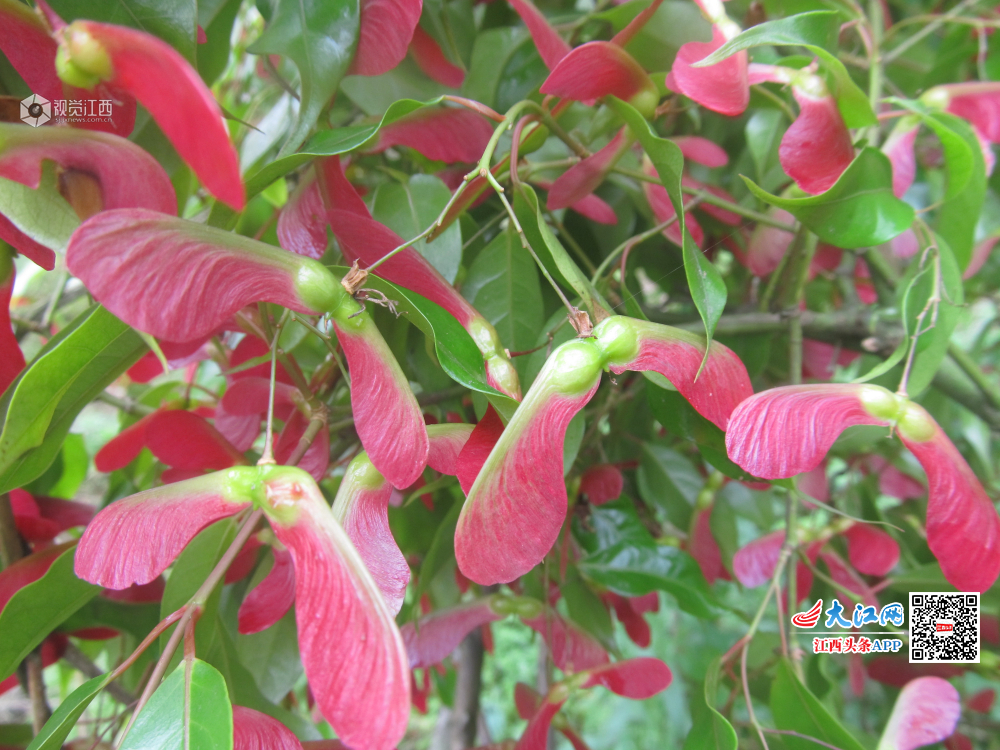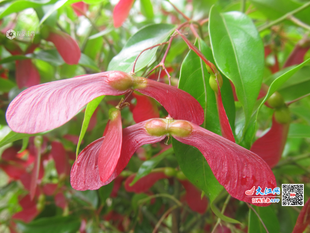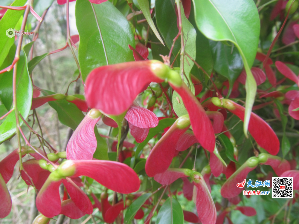 经过安福县北华山林场多年精心繁育的红翅槭,如今又开出了艳丽的花朵,并结出奇特的果子,为“五一”增添一道靓丽的风景。 人工繁育红翅槭极为罕见。3月开花,4月结果,果实双翅成钝角展开,呈红色,因果实酷似蝴蝶而得名。