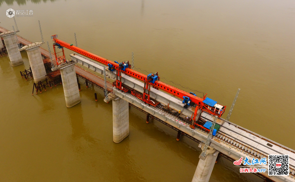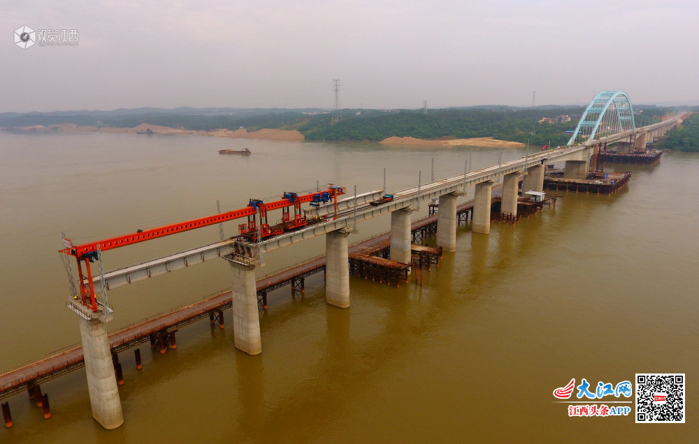 蒙华铁路赣江特大桥 假日施工忙