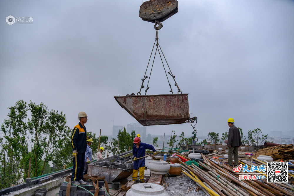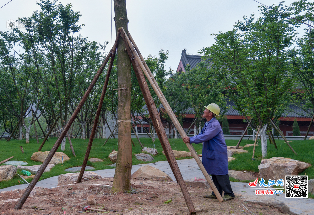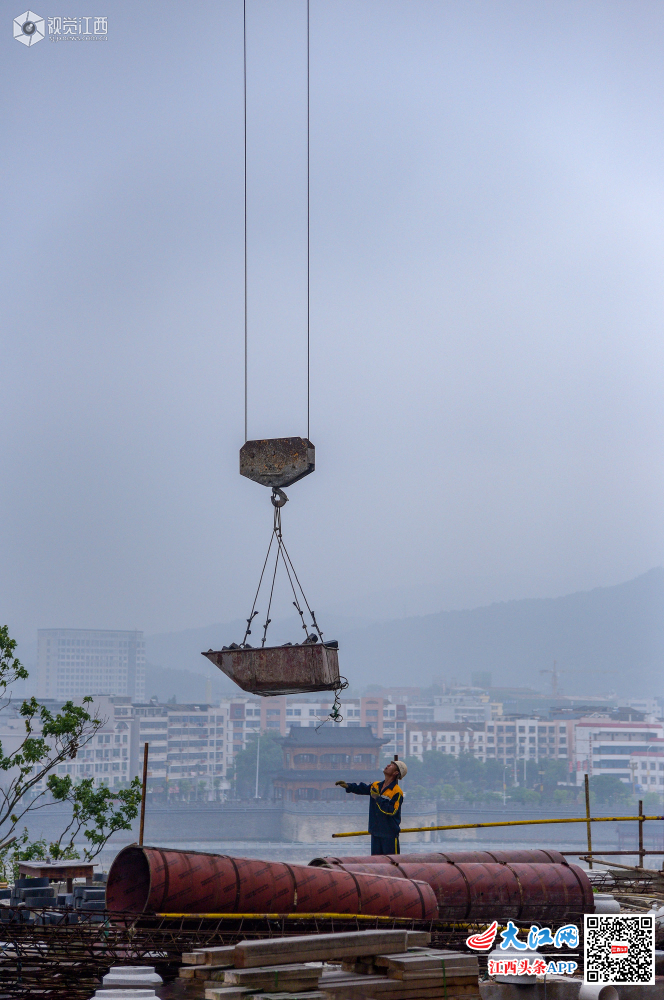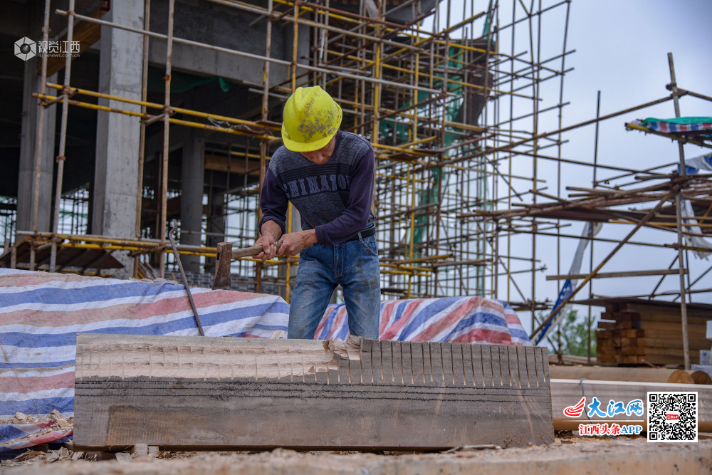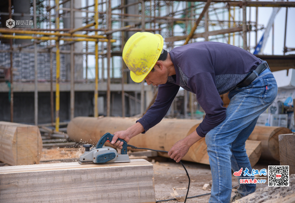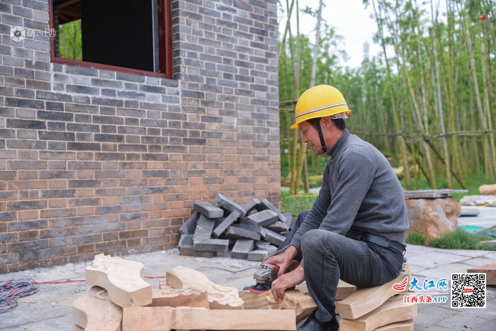 5月3日,吉安·中国进士文化园施工现场,工人们放弃”五一“假期休息,坚守岗位,争取早日完工,为游人创造一处修身养性的文化活动场所。