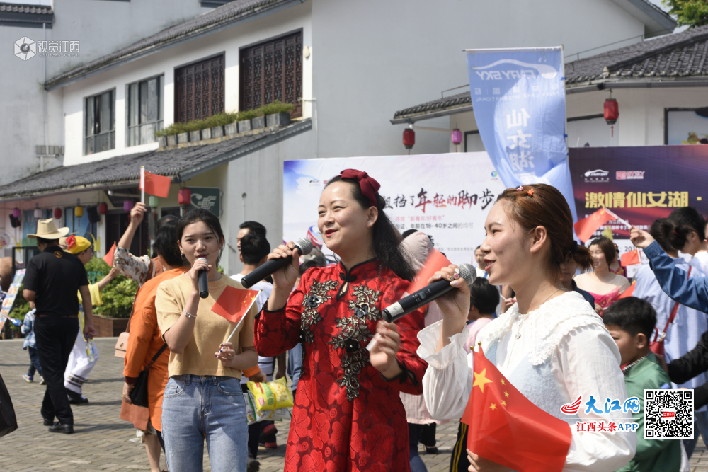 “五一”小长假期间,新余仙女湖景区洋溢着浓浓的节日气氛。当日上午10时许,一阵激扬的歌声突然响起,来自各行各业的劳动者从人群中走出,站在景区商业街放声歌唱《我和我的祖国》。现场游客也被点燃起了激情,游客们挥舞手中的小国旗,一齐唱响《我和我的祖国》,优美的歌声和动人的旋律在仙女湖湖上久久回荡。
