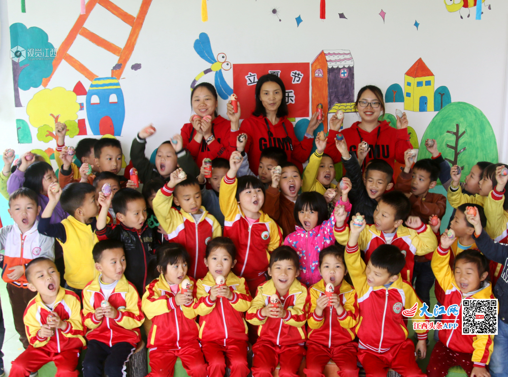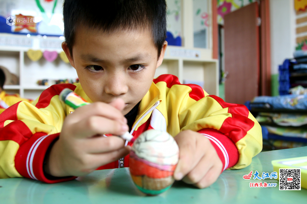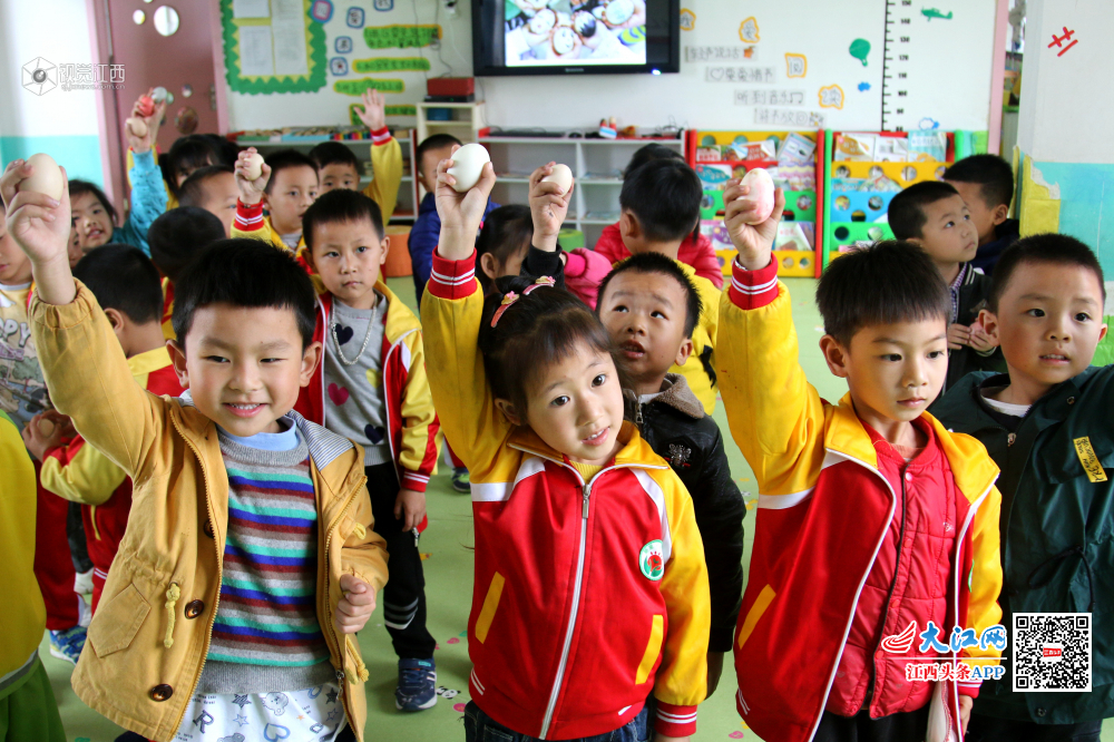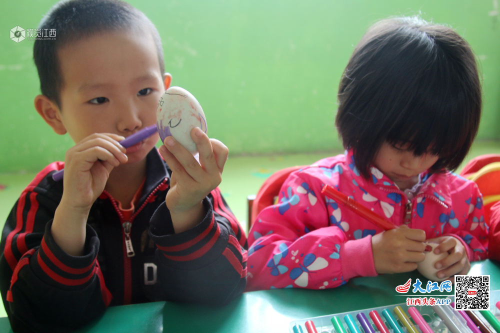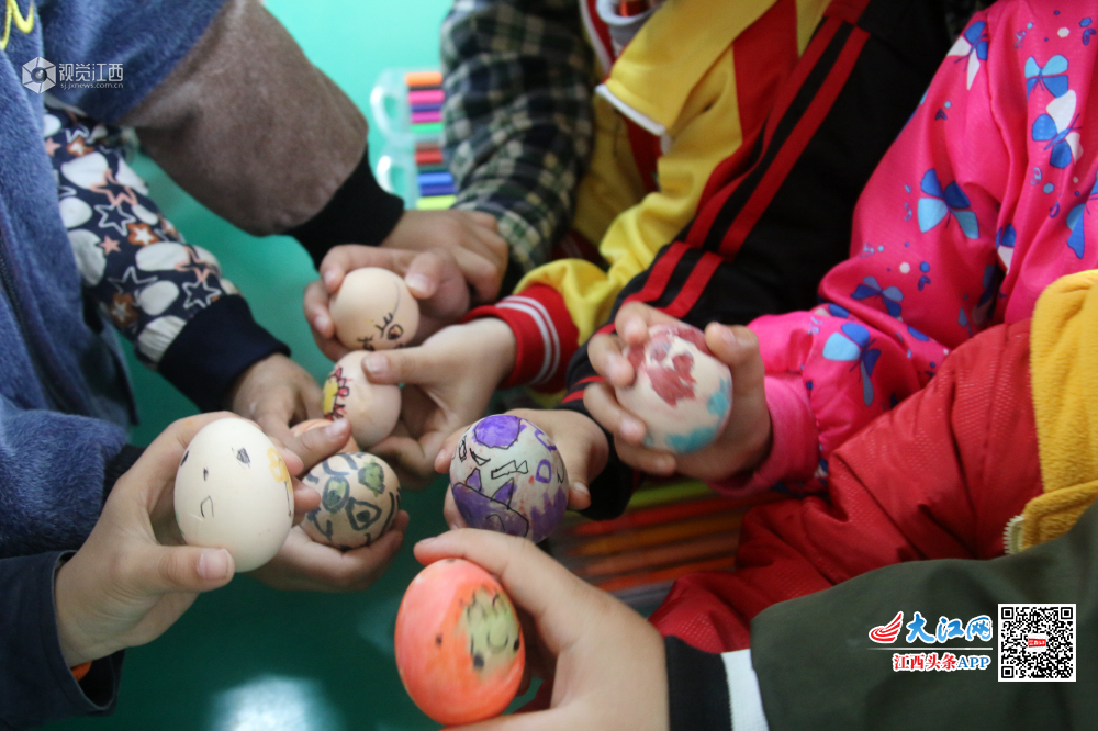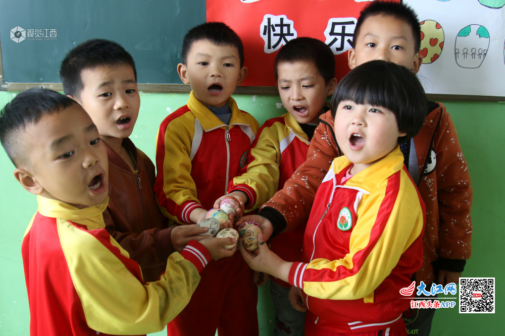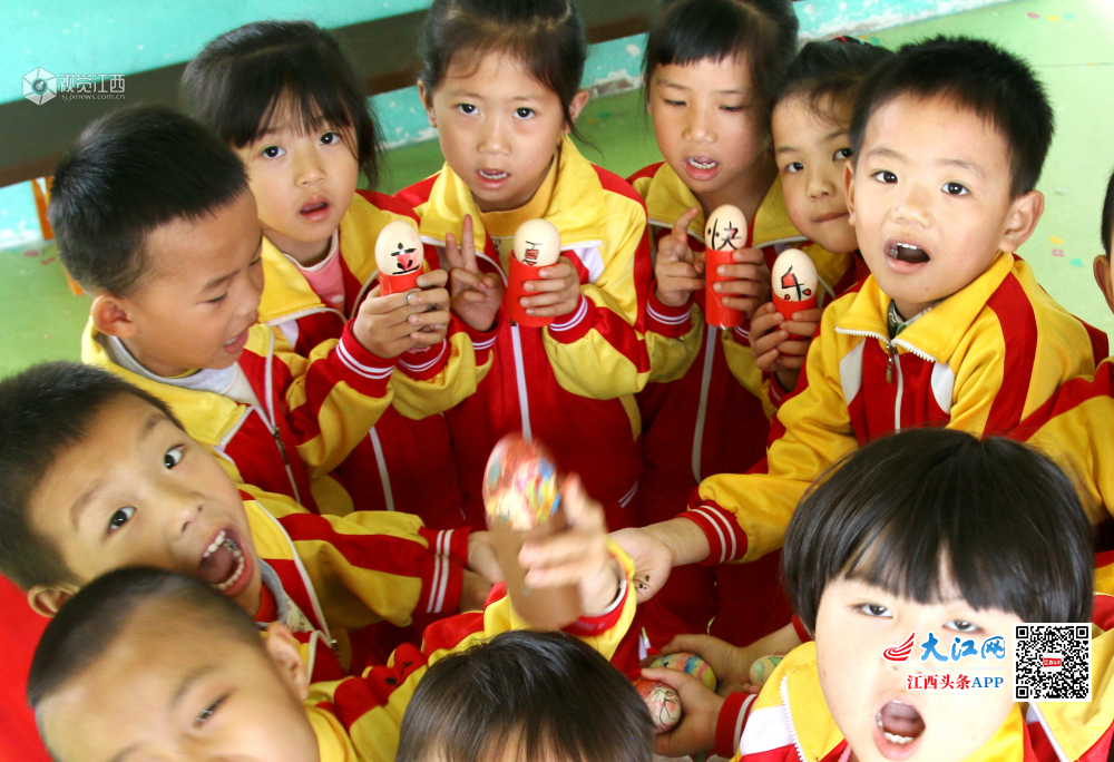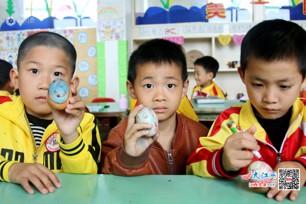 5月6日,江西省遂川县枚江镇新星幼教的孩子们正在开心地“绘彩蛋”、“拄(碰)蛋”等活动。