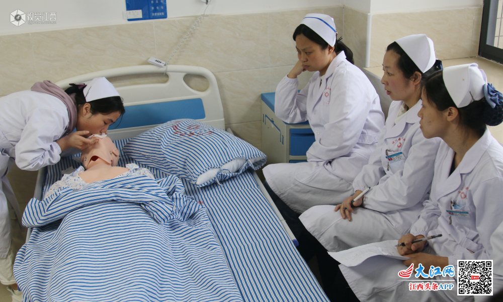 2019年5月7日,江西省遂川云岭新城医院护理人员在该院开展护理技能比拼。为迎接512国际护士节,遂川云岭医院举办了护理技能操作竞赛,现场他们从护理基本常识、心肺复苏、静脉滴注等方面,将平时工作中的每个细节都表现得十分到位,充分展现了各自扎实的基本功和应变能力,展示了她们爱岗敬业的精神风貌,通过技能竞赛激励了护士们提高护理技能和职业素养,提高了医院护理队伍的技术水平。