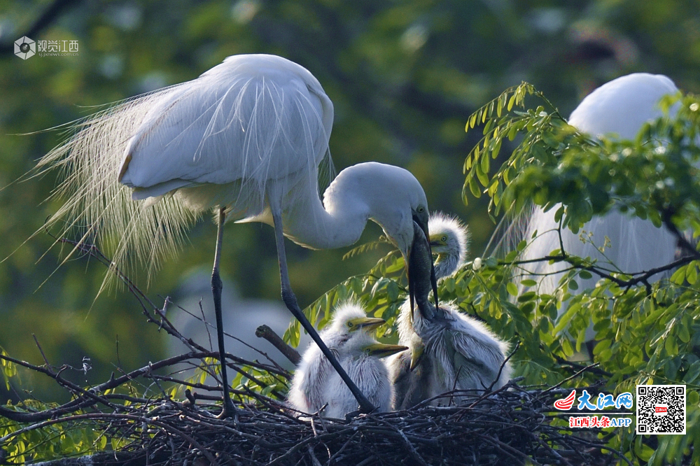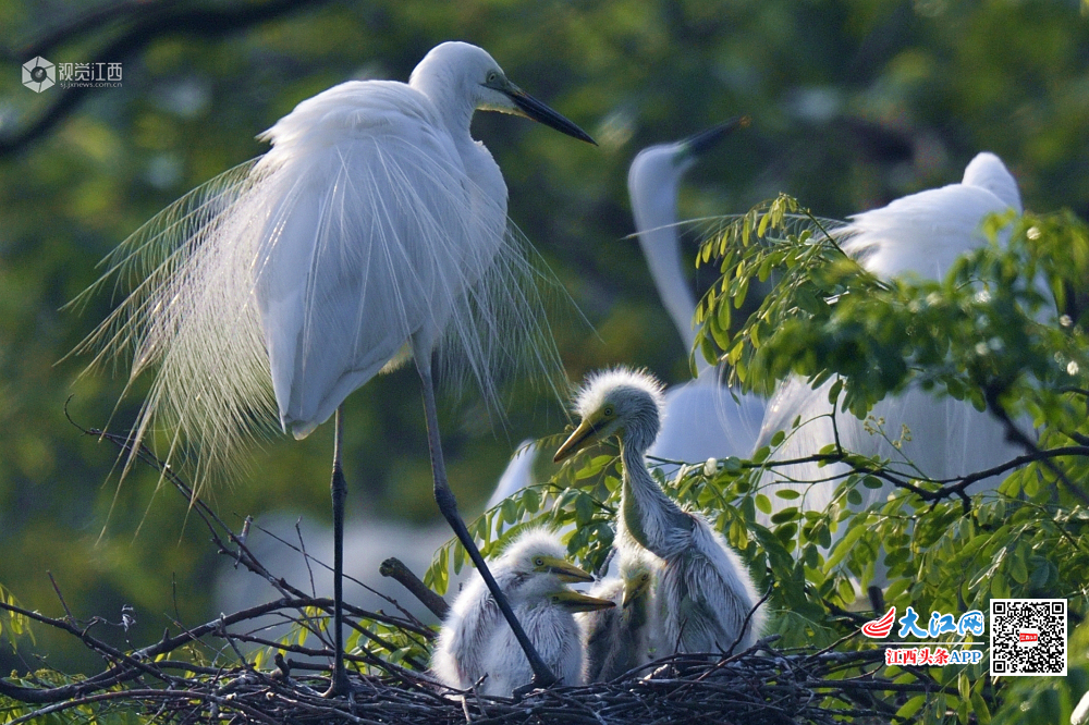 南昌天香园今年又迎来了许多可爱的小白鹭,白鹭妈妈精心养护鹭宝宝的场景甚是感人与温馨。