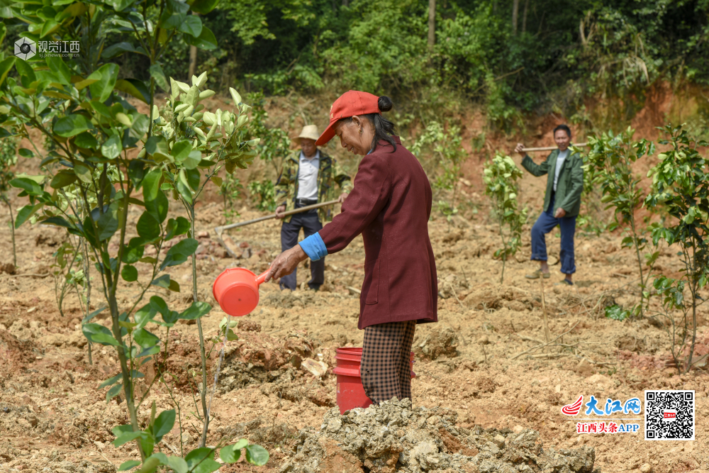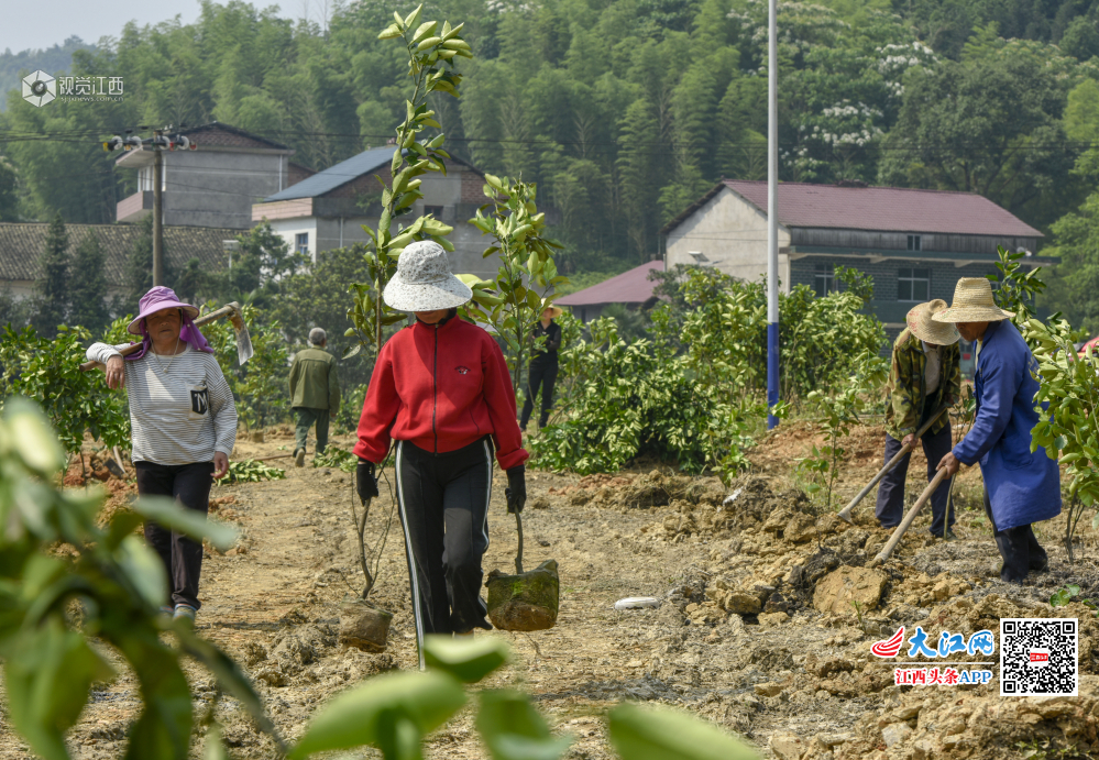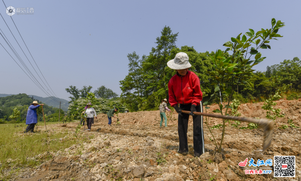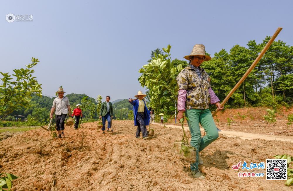 5月12日,新余市仙女湖风景名胜区凤凰湾办事处东坑村小组村民和贫困户一起种下17亩“井冈蜜柚”,既发展村集体经济,又帮助贫困户增收。