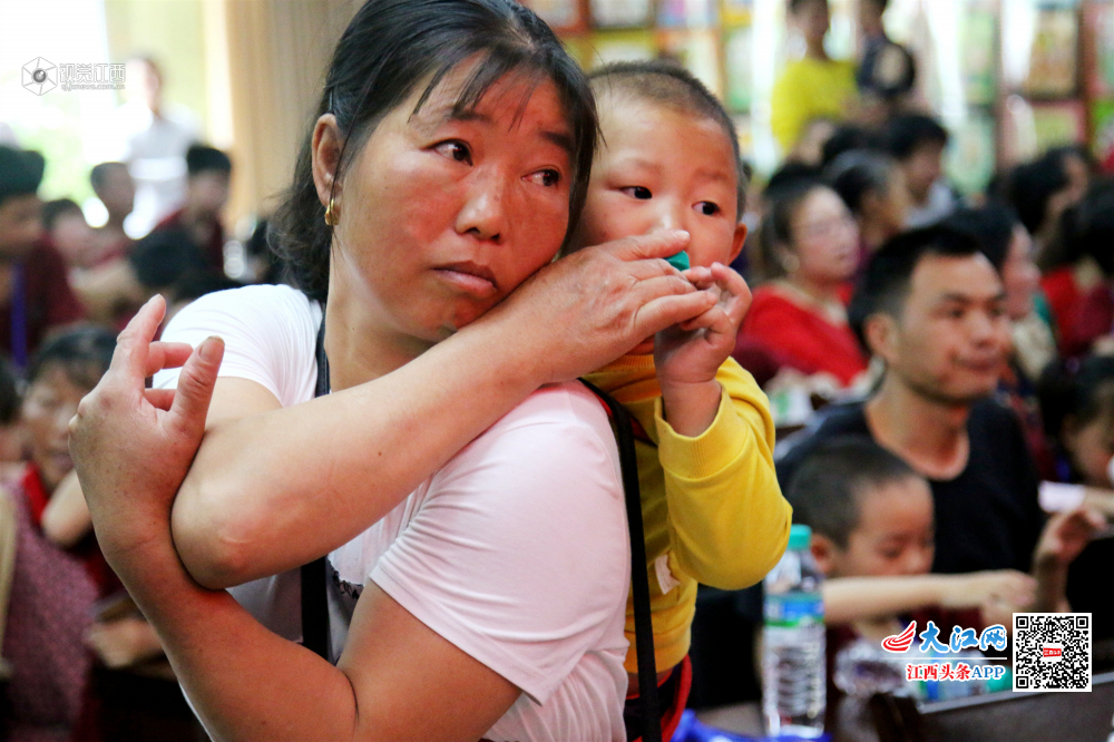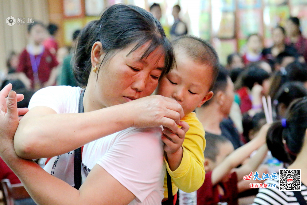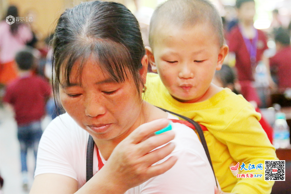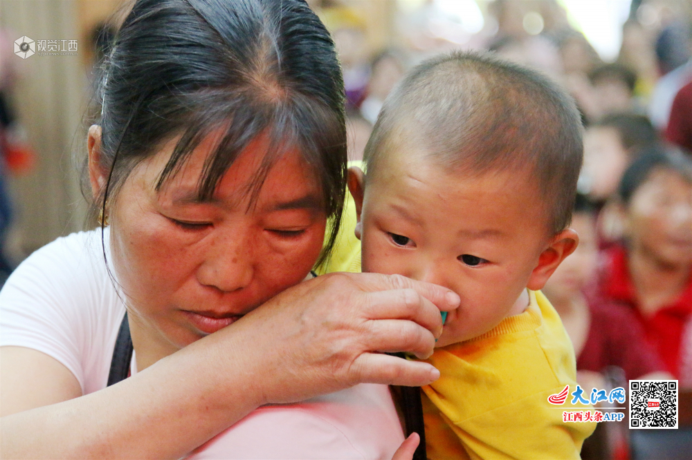 2019年5月12日,在江西省遂川县一个比赛现场,看到一位该县珠田乡的奶奶陪着一位大孙子前来参加比赛,还带着另位较小的孩子背在肩上,见孩子口渴时,奶奶用矿泉水倒在瓶盖里,一小盖一小盖倒背喂水到小孩子嘴里解渴,这一幕画面十分温馨,惹来周围众人爱意的目光。