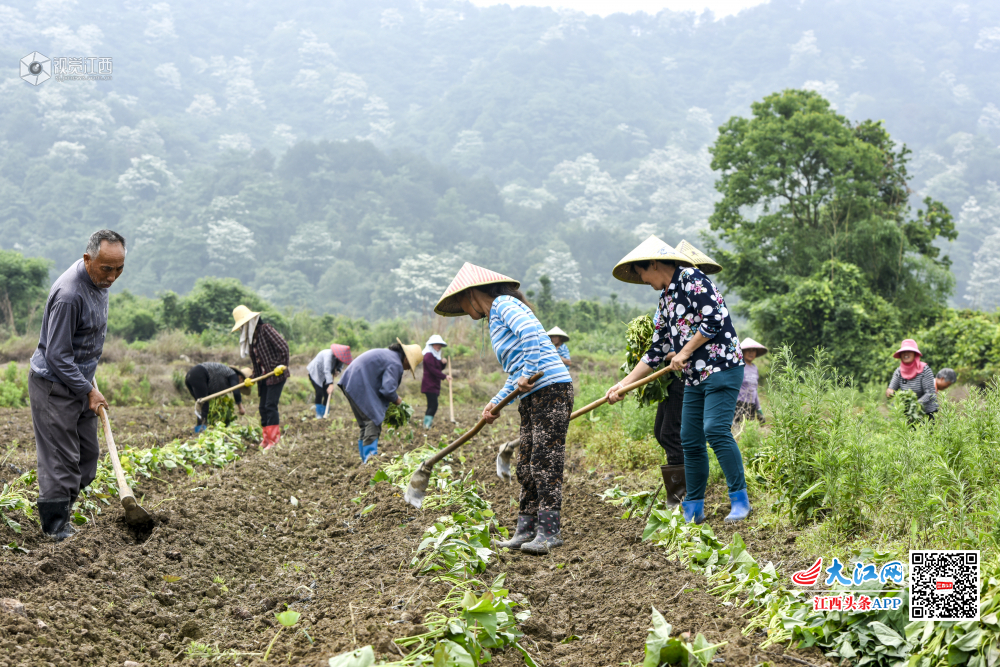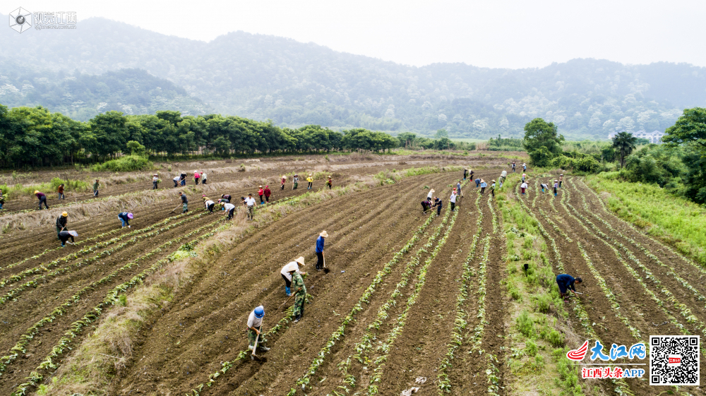 5月15日,新余市仙女湖风景名胜区钤阳办事处白田村的村民们正在田间种植紫薯,一片繁忙景象。白田村通过流转土地160亩成立合作社种植薯紫,吸纳全村22户贫困户入股,让所有参与产业发展的贫困户都能增收脱贫致富,确保年底不低于15%的分红。