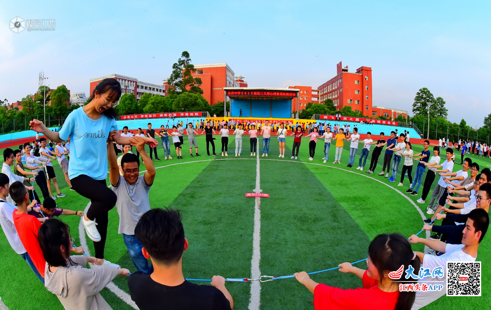 2019年高考将至,会昌县的各所中学及时为高三年级学生准备了形式多样的减压活动,通过拉动力圈、接力跳、击鼓传花等趣味游戏,让考生们放松心情,缓解紧张情绪,以自信乐观的心态迎接高考。