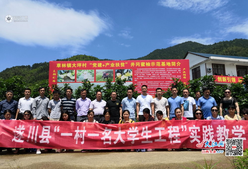 2019年5月17日,江西省遂川县委党校组织“一村一名”大学生来到该县草林镇大坪村金旗井冈蜜柚专业合作社开展主题实践教学活动。近年来,该县积极为基层人才培养创新模式,结合当地实际,培育一村一名大学生新型职业农民,通过“学校+基地”等方式,专门聘请农技专家和种养大户到基地授课,让学员通过基地实践教学后受益匪浅,即启发了创新创业思路,又坚定了他们在乡村振兴实践中结合本地实际发展壮大产业的信心和勇气。