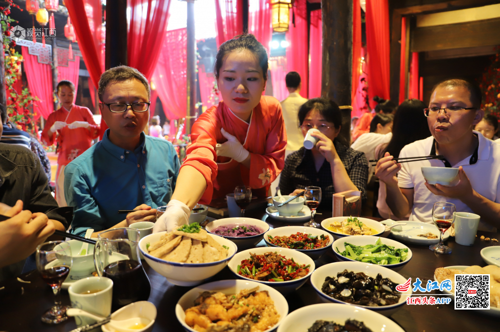 2019年江西省旅游产业发展大会召开在即,5月18日,在大会承办地——宜春市万载古城景区,数百人欢聚一堂,体验万载特色祠堂喜宴。
