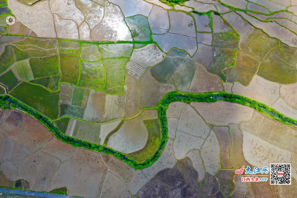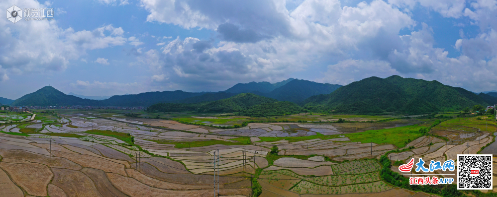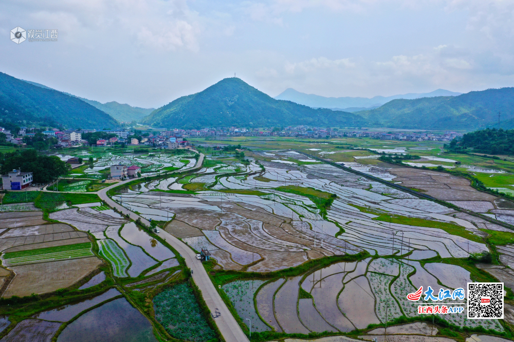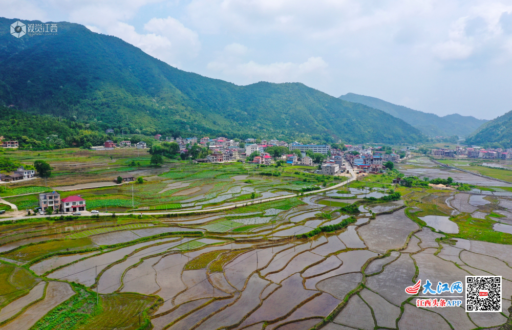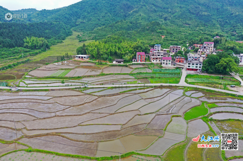 2019年5月18日,航拍江西省上饶市铅山县葛仙山镇港东村梯田,蓄满水的梯田犹如美丽画卷。初夏时节,铅山县葛仙山镇港东村梯田开耕,开耕后的梯田蓄水充盈,在阳光照耀下,蓝色的天空将如镜的梯田水面晕染得五彩缤纷,农民在田间辛勤劳作,层层叠叠的梯田蜿蜒迂回,构成一幅幅如诗似梦的美丽画卷。